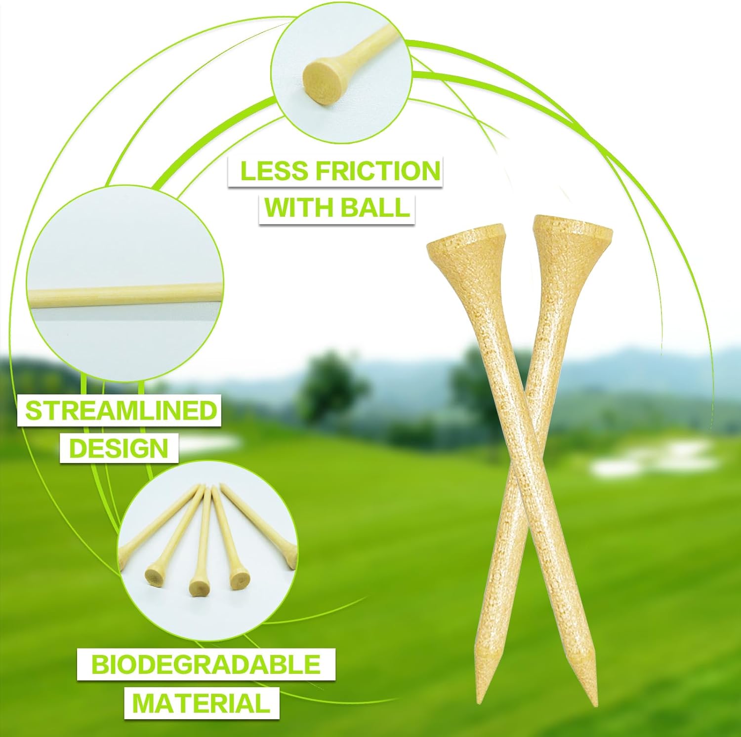 - Quality Material To Make Better Durability And Performance: This Golf Wood Tees are Made of High Quality Bamboo, Lightweight and More Durable. Designed for Better Durability and Performance.