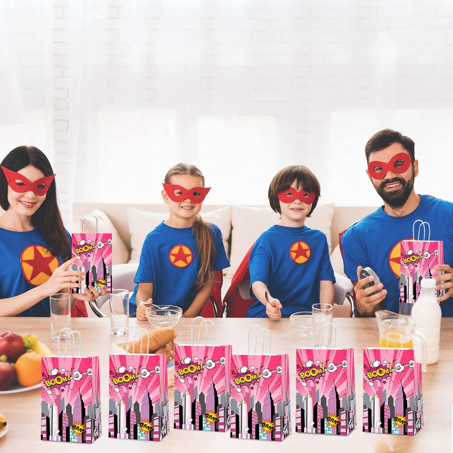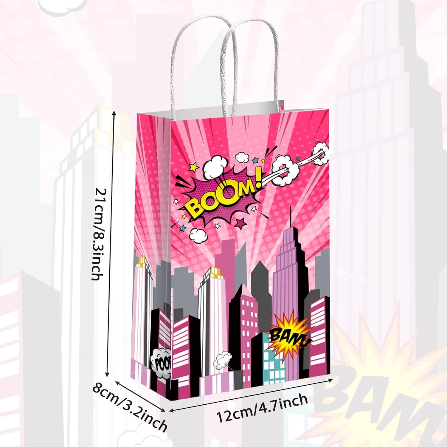- 【Super themed heroine party theme design】: The pattern on the paper bag is full of super themed heroine-themed vibes; It is deeply loved by children and is the first choice for Pink Super themed Hero-themed birthday parties