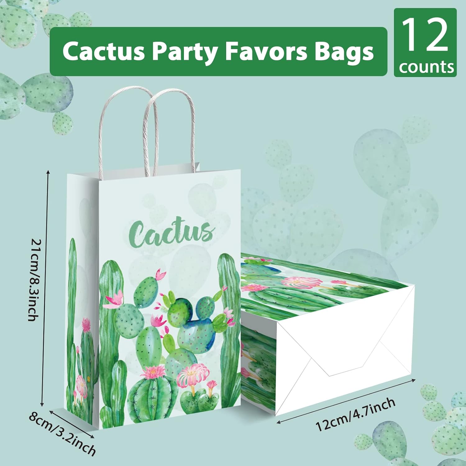 Gisgfim 12 Pcs Cactus Party Favors Candy Bags Cactus Theme Boho Birthday Party Goody Treat Paper Bags Floral Decorations