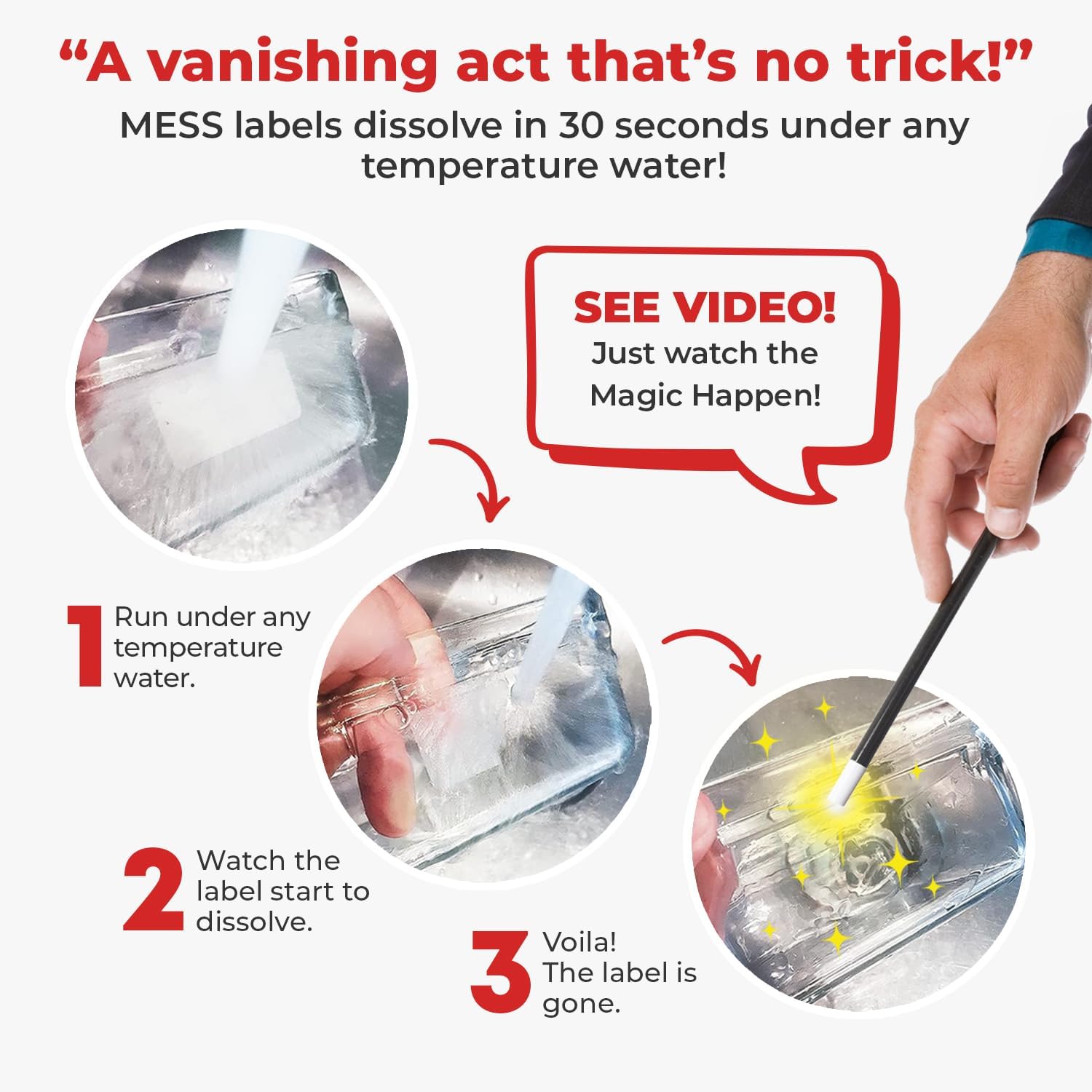 - Ensure Freshness – Never make questionable food choices again with MESS dissolvable labels. These are 100% removable canning labels.