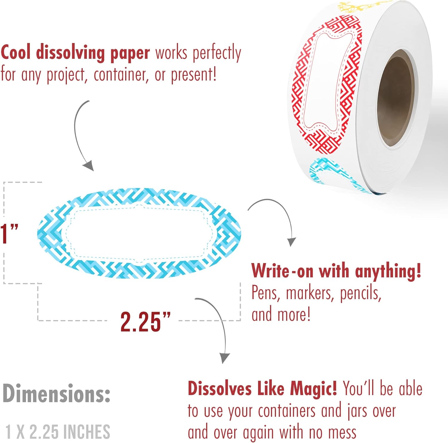 MESS Dissolvable Canning Labels for Jars – 1x2.25 in. 150/Pack – Removable Stickers for Mason Jars, Jam, Preserves (Color)