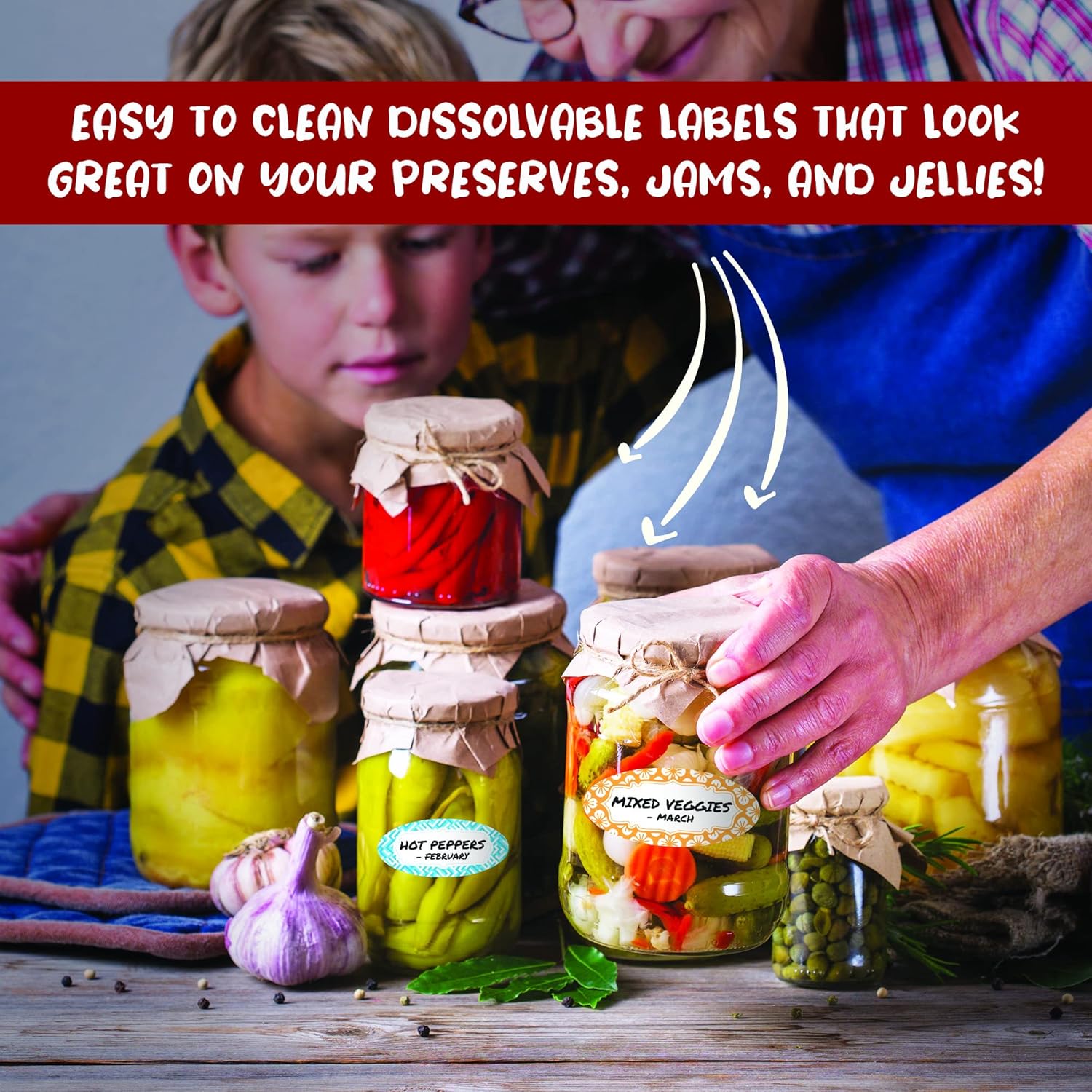 - Rinse Away Residue – Easily dissolve your canning labels for jars under any temperature of water in seconds.