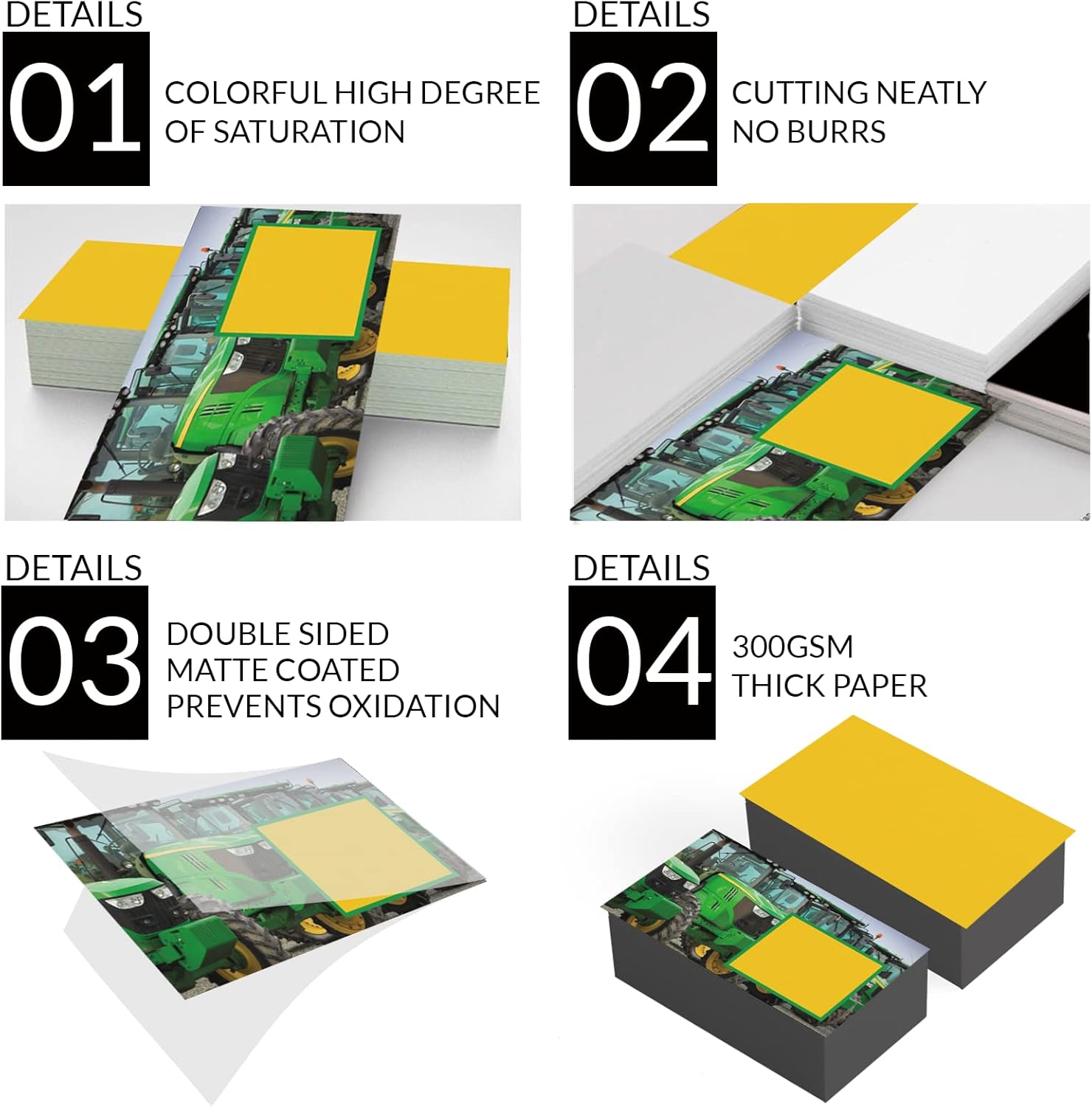 - Impressive Quality: Our custom business cards measure 3.5 x 2 inches (90x54 mm) and feature high-quality 300gsm waterproof paper with a matte coating. Each card is precision-cut for smooth, clean edges. Our printing process ensures softer, more subtle colors that will last.
