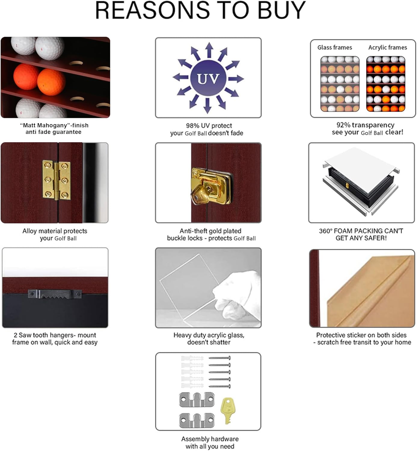 - 【STURDY PACKAGE】 - The golf ball collection case shadow box is surrounded by foam to get it fully protected. Metal bracket on the back mounts easily to the wall. No assembly required, comes in one piece.