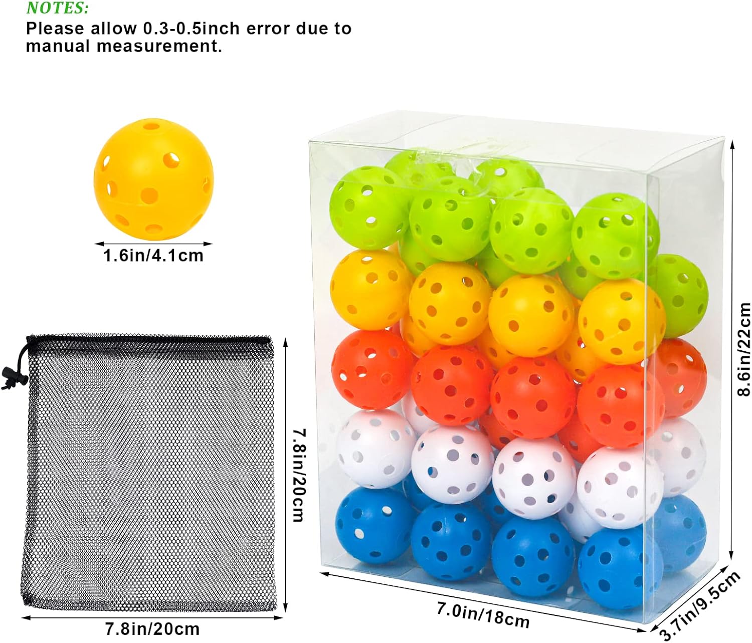 - ○【Various Colors】: You can clearly see the flight path with these colorful plastic golf balls, helping you learn how to hit your next shot. And its colorful exterior is hard to lose.