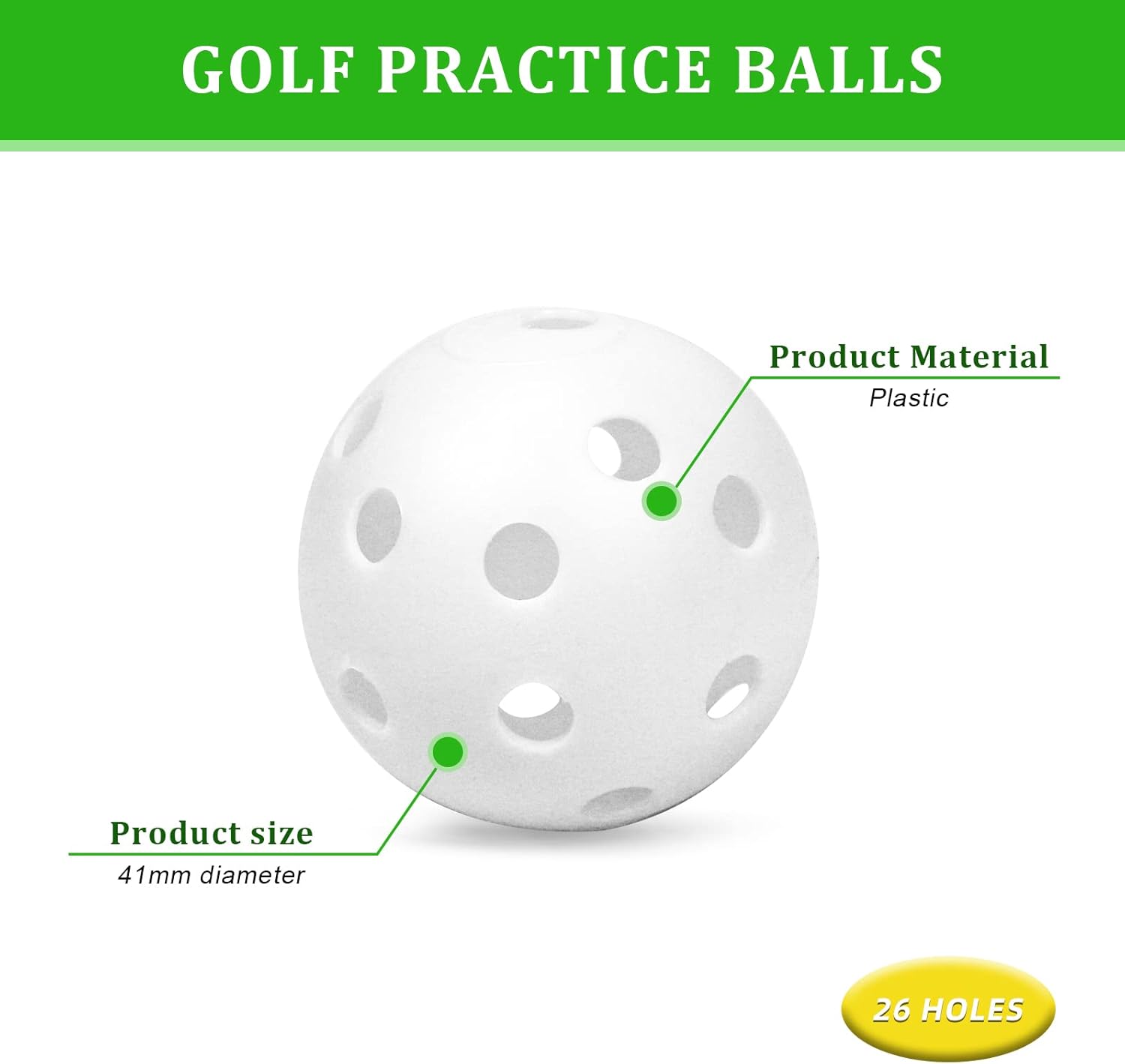 - ○【Material】: Our practice golf balls are made of high quality plastic, which is lightweight, durable and not easy to break. Even when used indoors, you won't break the furniture.