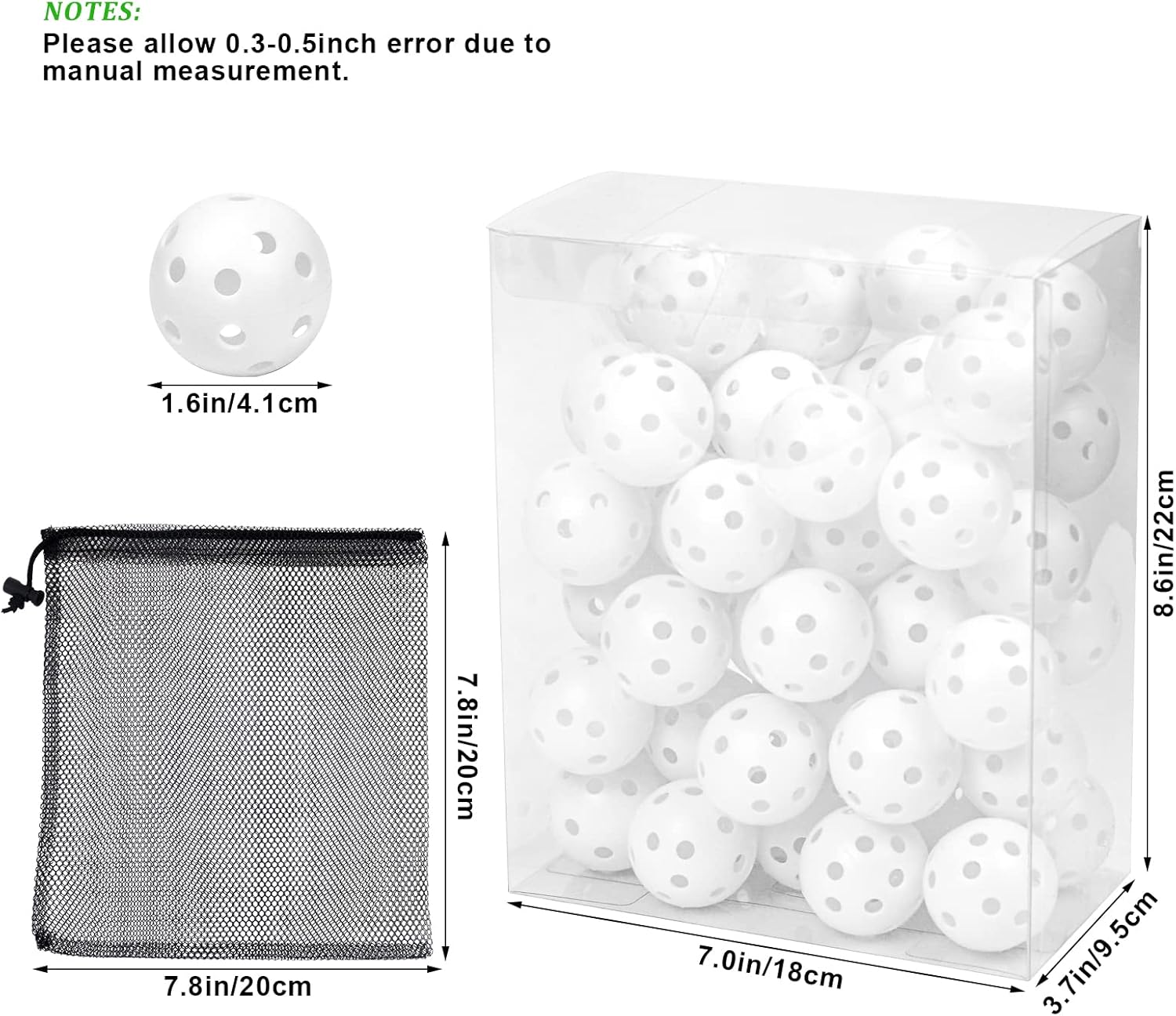 - ○【Visible Colors】: These white plastic golf balls are easy to spot in any terrain, so you don't have to worry about losing them unless they are in a white background.