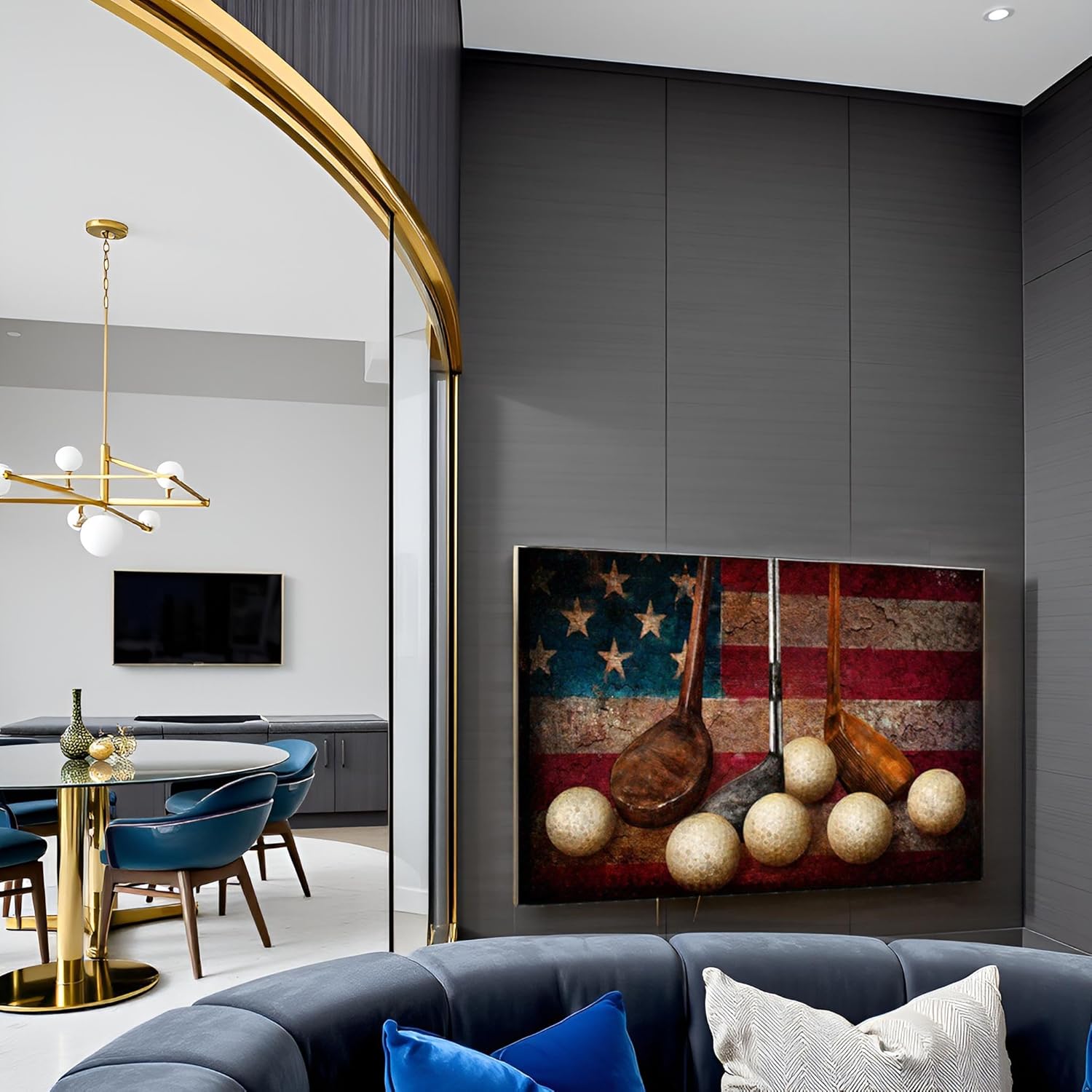 LevvArts Golf Canvas Wall Art Vintage Golf Ball with American Flag Painting Artwork Leisure Sports Poster Canvas Prints for Living Room Home Office Club Decoration Easy Hanging