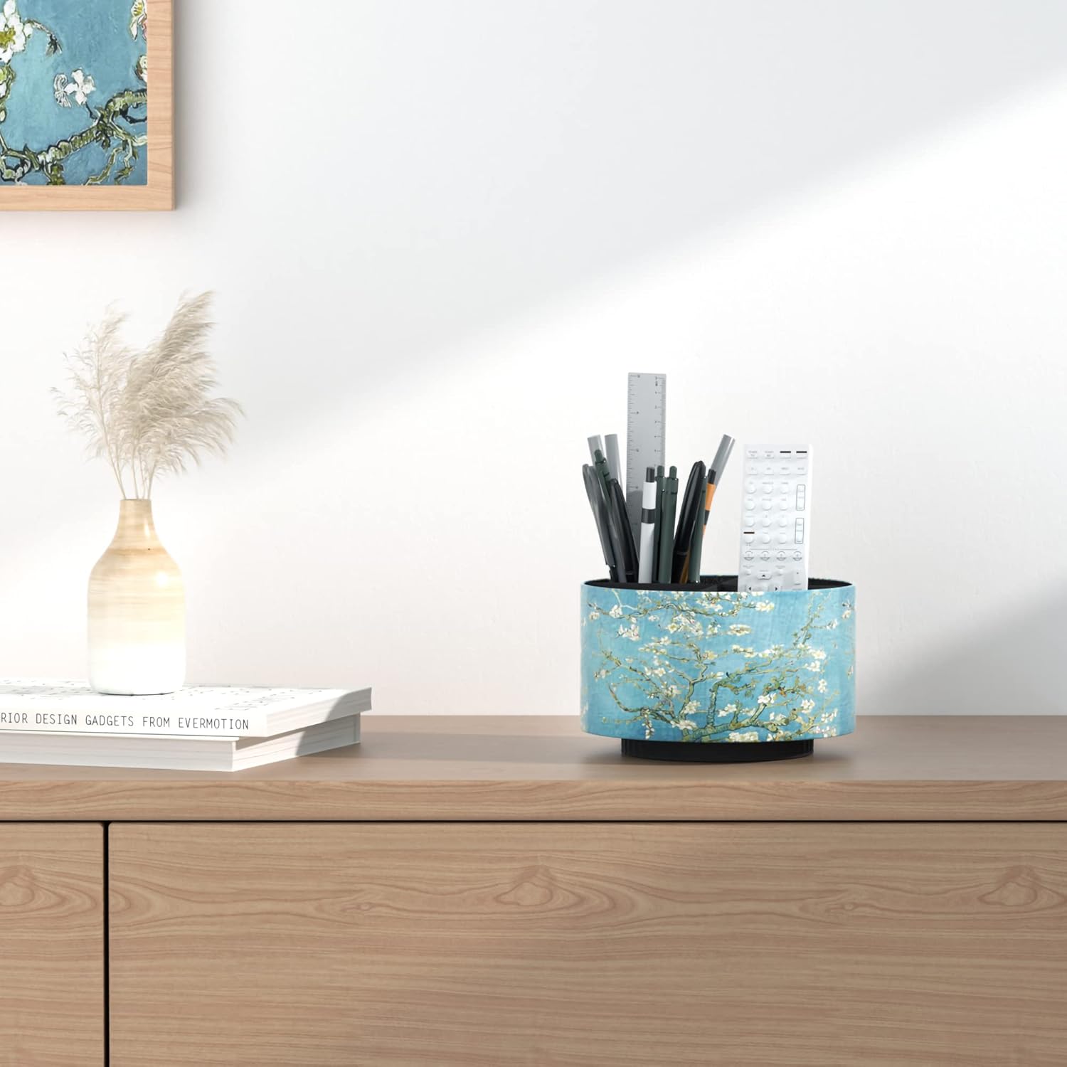 - ✎360° Revolving Design: You can freely rotate the pen holder steadily left and right,unique spinning base design allows easy access to items from any directions.The non-slip pads on the bottom keep it stay in place when rotating.