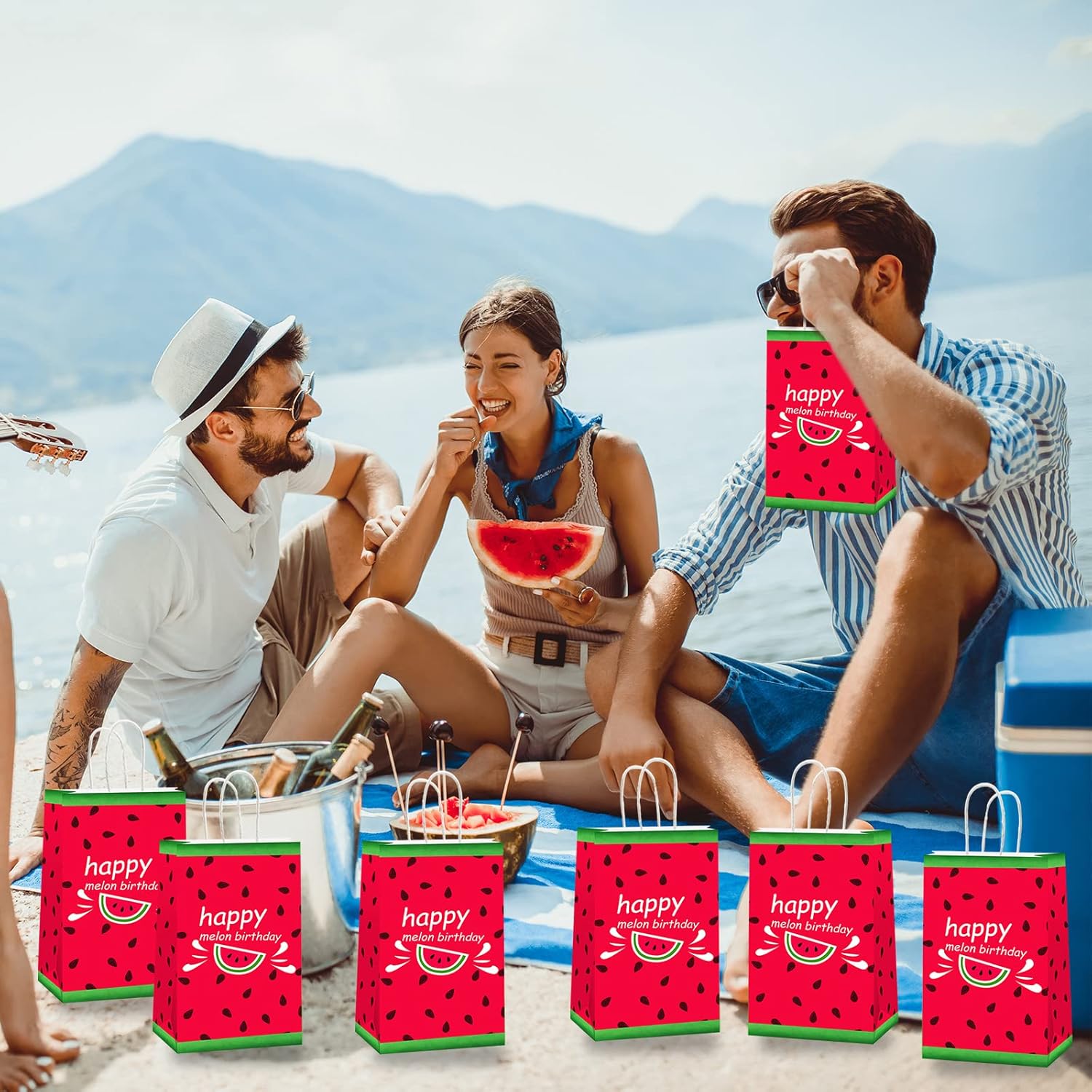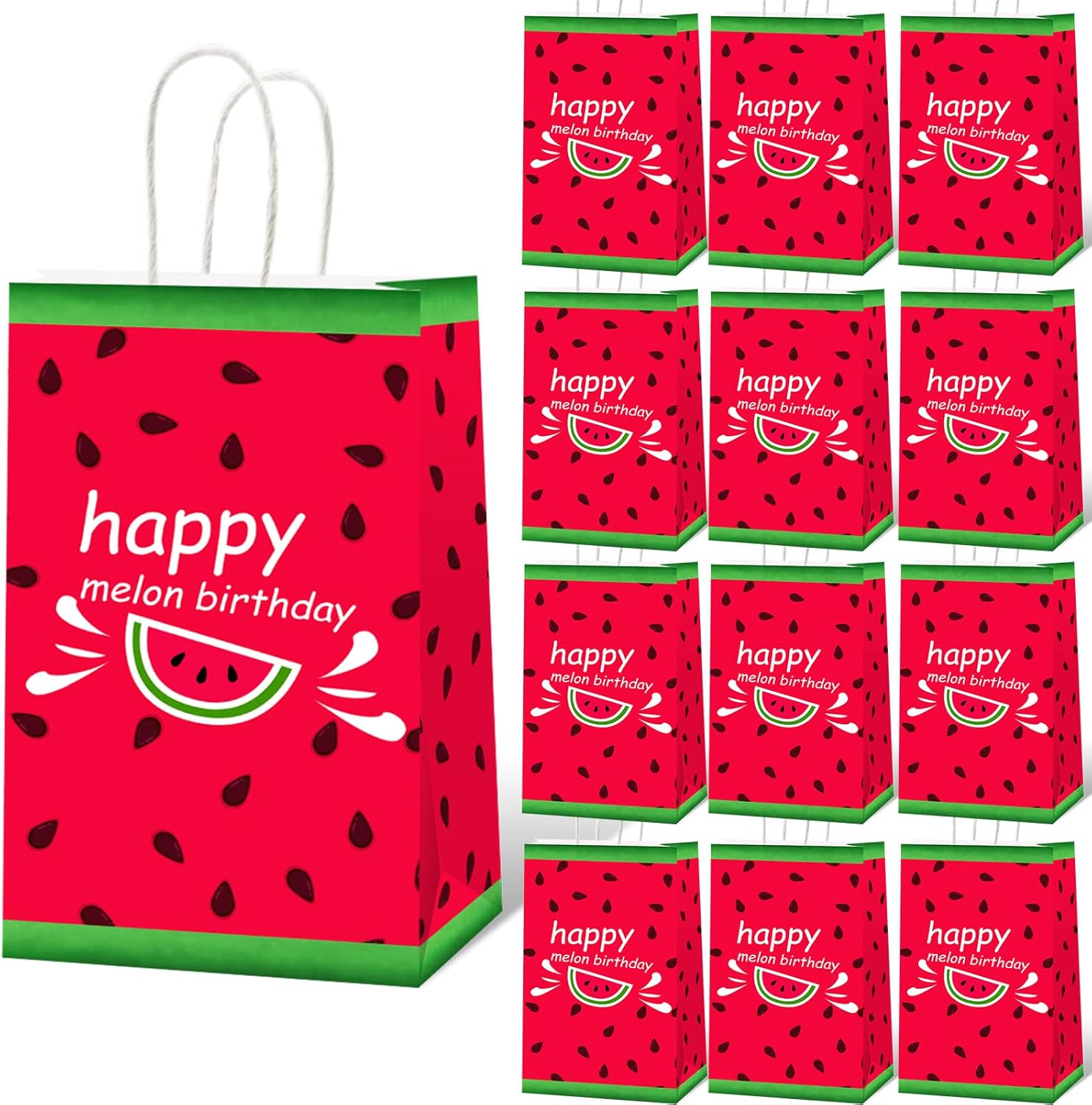 gisgfim 12 Pieces Watermelon Theme Party Bags - Summer Birthday Party Goody Treat Paper Bags - Fruit Theme For Kids Boys Teens Adults