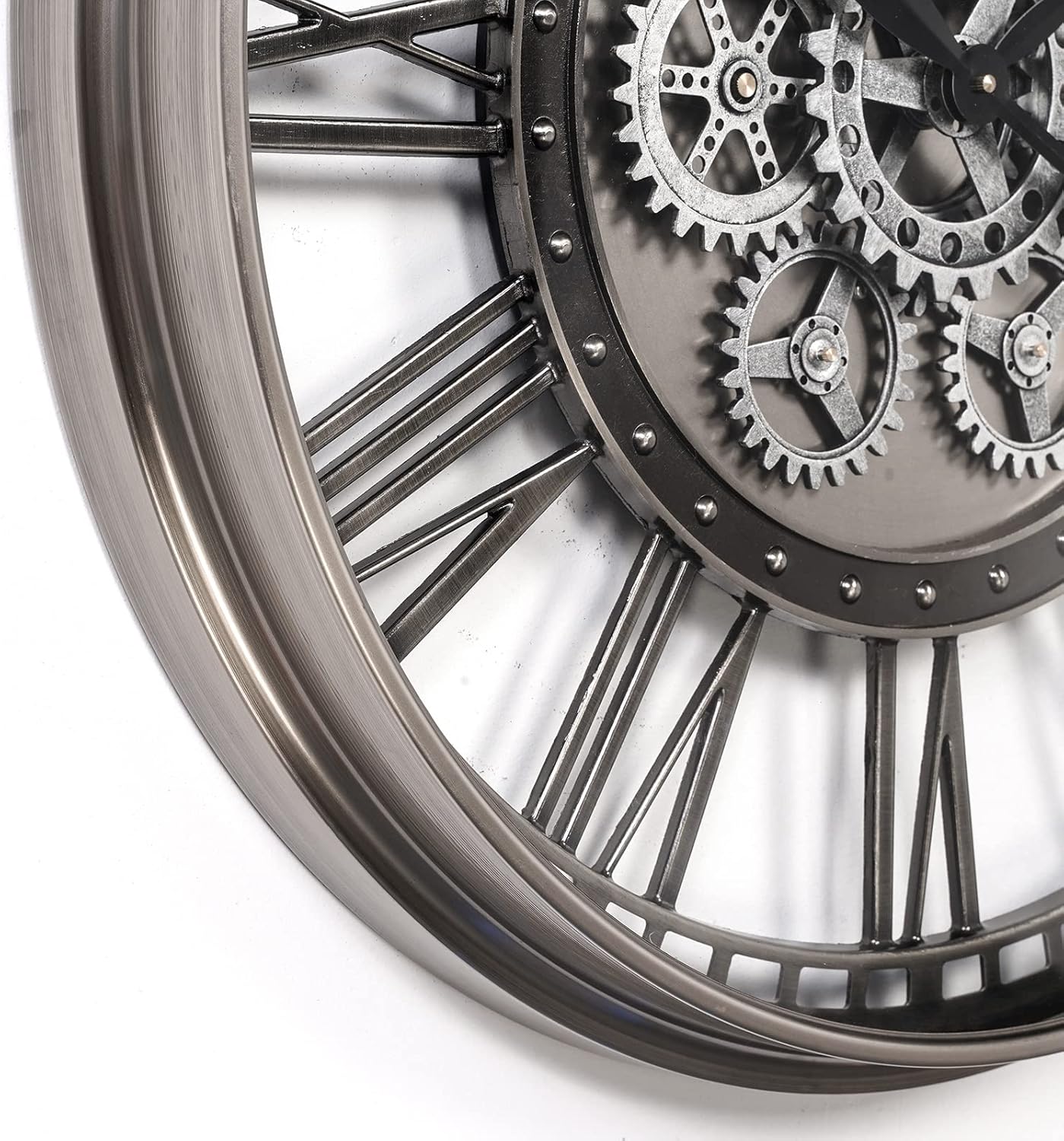 CLXEAST 28 Inch Original Real Moving Gear Wall Clock Roman Numerals,Oversized Large Wall Clocks for Modern Farmhouse Living Room Home Decor,Brushed Gunmetal