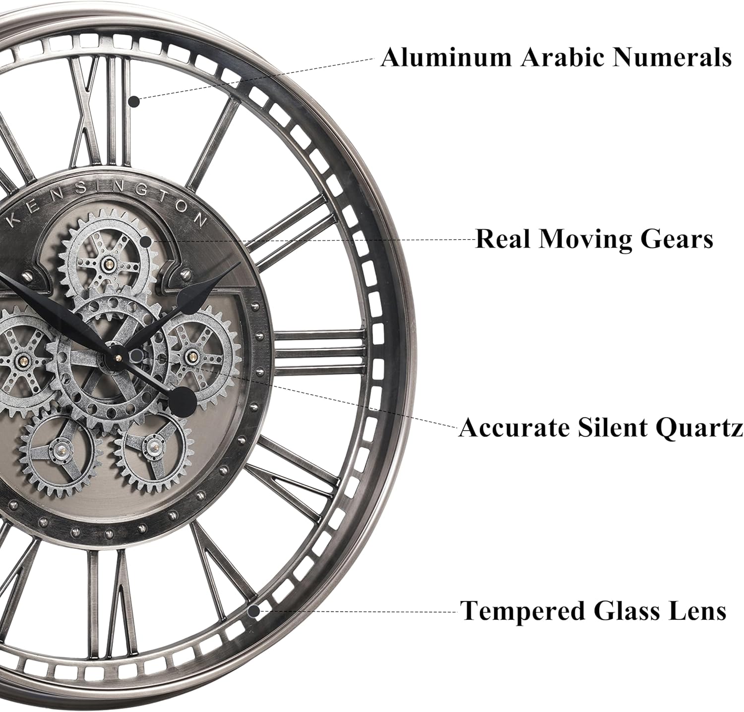 - [Accurate Silent Quartz Movement] Based on high-torque, quality silent quartz movement, it function as beautiful wall decor pieces besides telling time, and bring both style and purpose to any room. Sit and watch the time fly by with this stunning modern moving gears wall clock