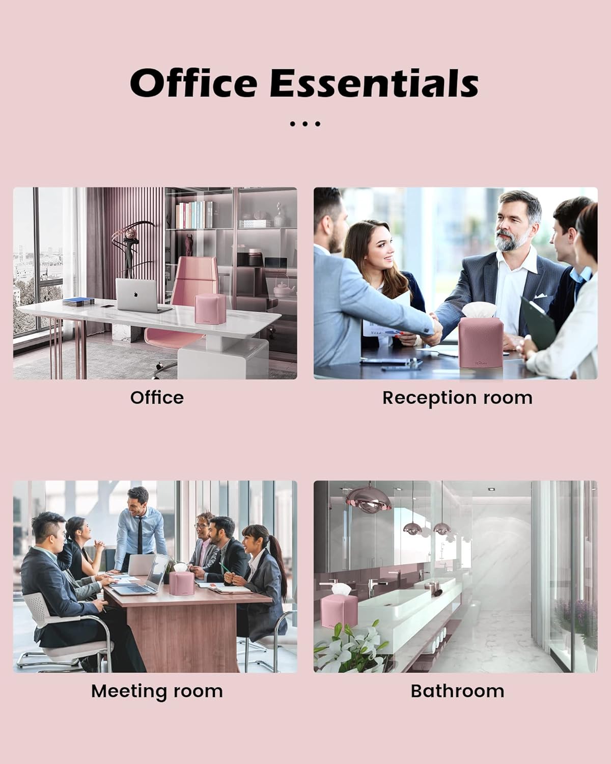 Tissue Box Cover for PU Leather, Modern Simple Solid Color Holder Square Tissue Bag, Ideal for Bathrooms,Office,Car,Nightstand,Outdoor Tent,Dining Table,5"X5"X5", Single Pink