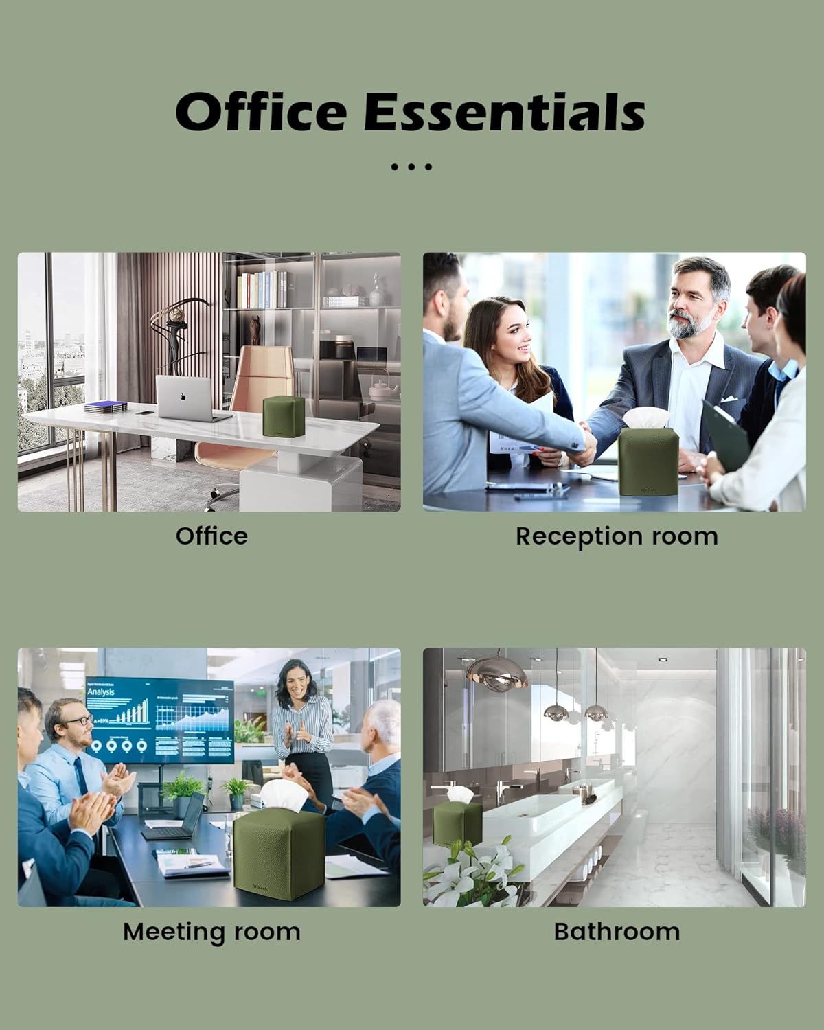 Tissue Box Cover for PU Leather, Modern Simple Solid Color Holder Square Tissue Bag, Ideal for Bathrooms,Office,Car,Nightstand,Outdoor Tent,Dining Table,5"X5"X5", Single Green