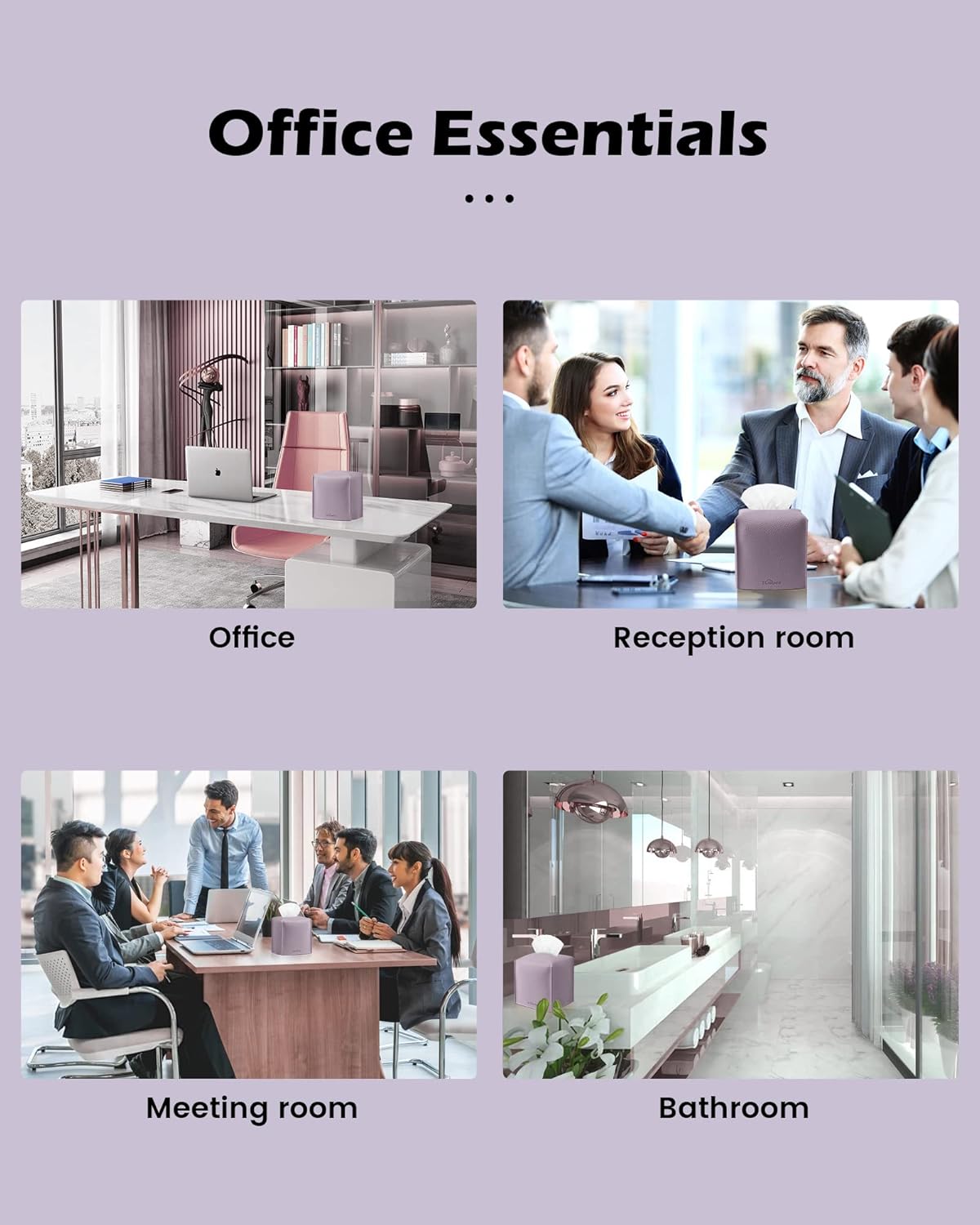 Tissue Box Cover for PU Leather, Modern Simple Solid Color Holder Square Tissue Bag, Ideal for Bathrooms,Office,Car,Nightstand,Outdoor Tent,Dining Table,5"X5"X5", Single Purple