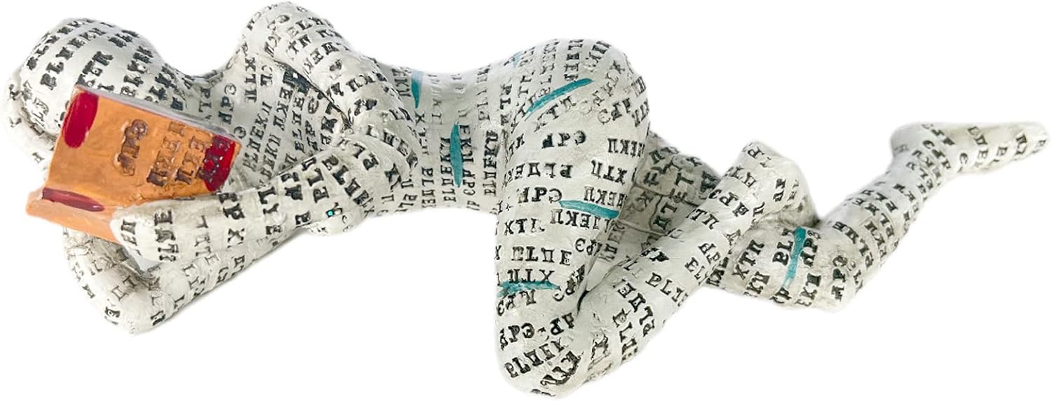 - [AESTHETIC DECOR] The reading women statue will be a special decor in your dining room or living room,office or bedroom, espacially fits on shelf and table. This sculpture looks like a woman reading a book. It is worth mentioning that this woman is covered with letters, which more intuitively shows the beauty and power of intellectual women.