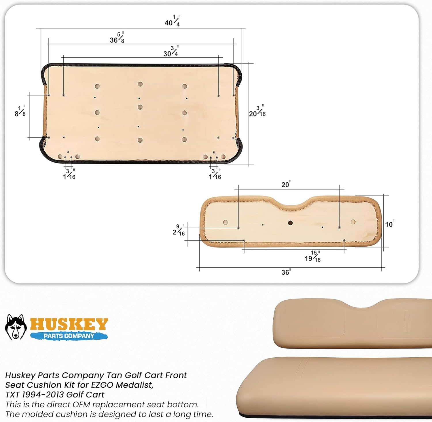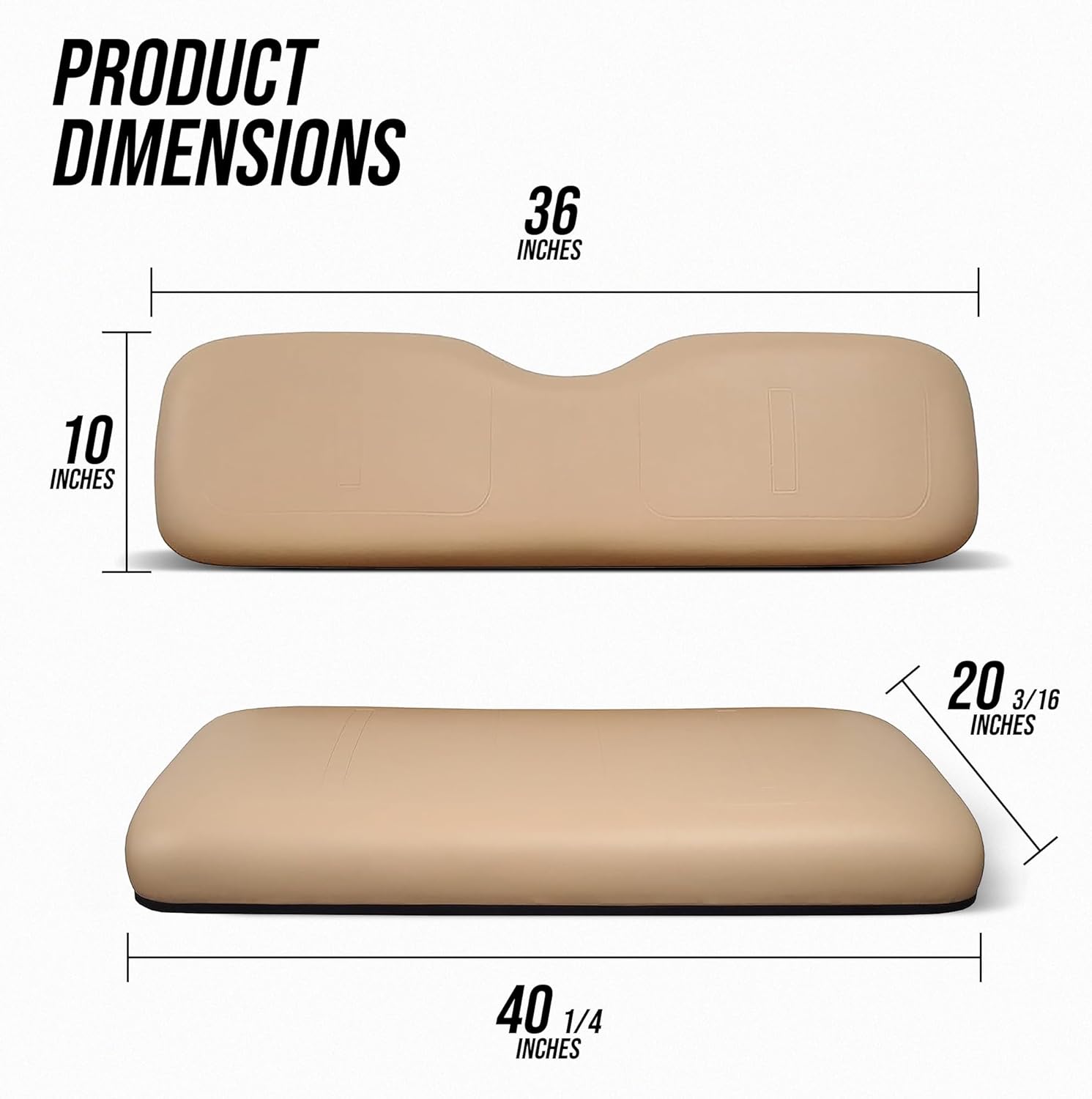 Huskey Parts Company Golf Cart Seat Cushion Set for Front Seat Lean Back & Bottom, Tan Color for EZGO Medalist, TXT 1994 to 2013, Golf Cart Front Seat Replacement with Mounting Hardware & Hinges