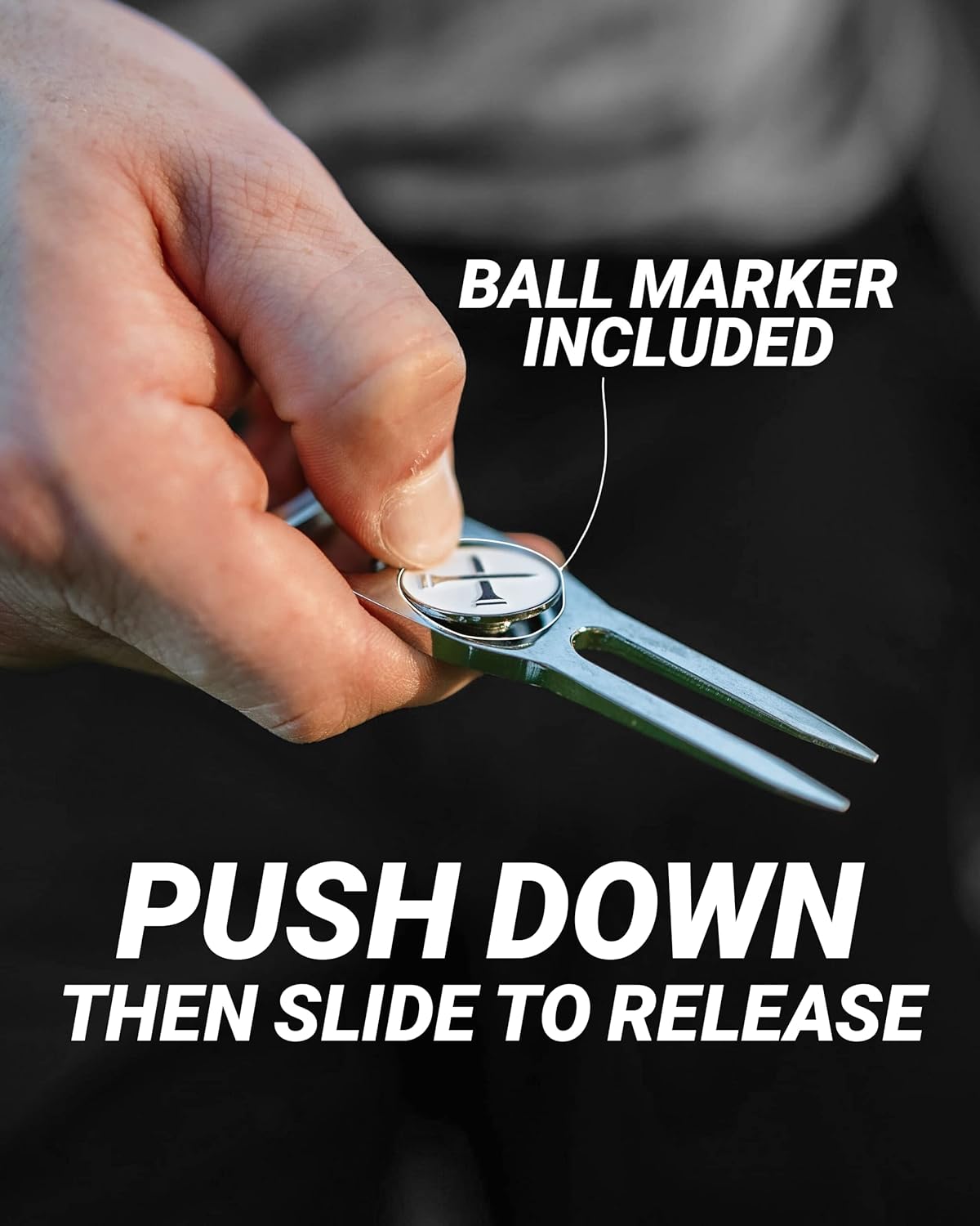 - 6-in-1 Divot Repair Tool: Designed to be the ultimate tool for the green. Fix any divot, , open bottles, hold your Blue Tees ball marker, clean your groves, keep your grips dry, or even use for putting drills.