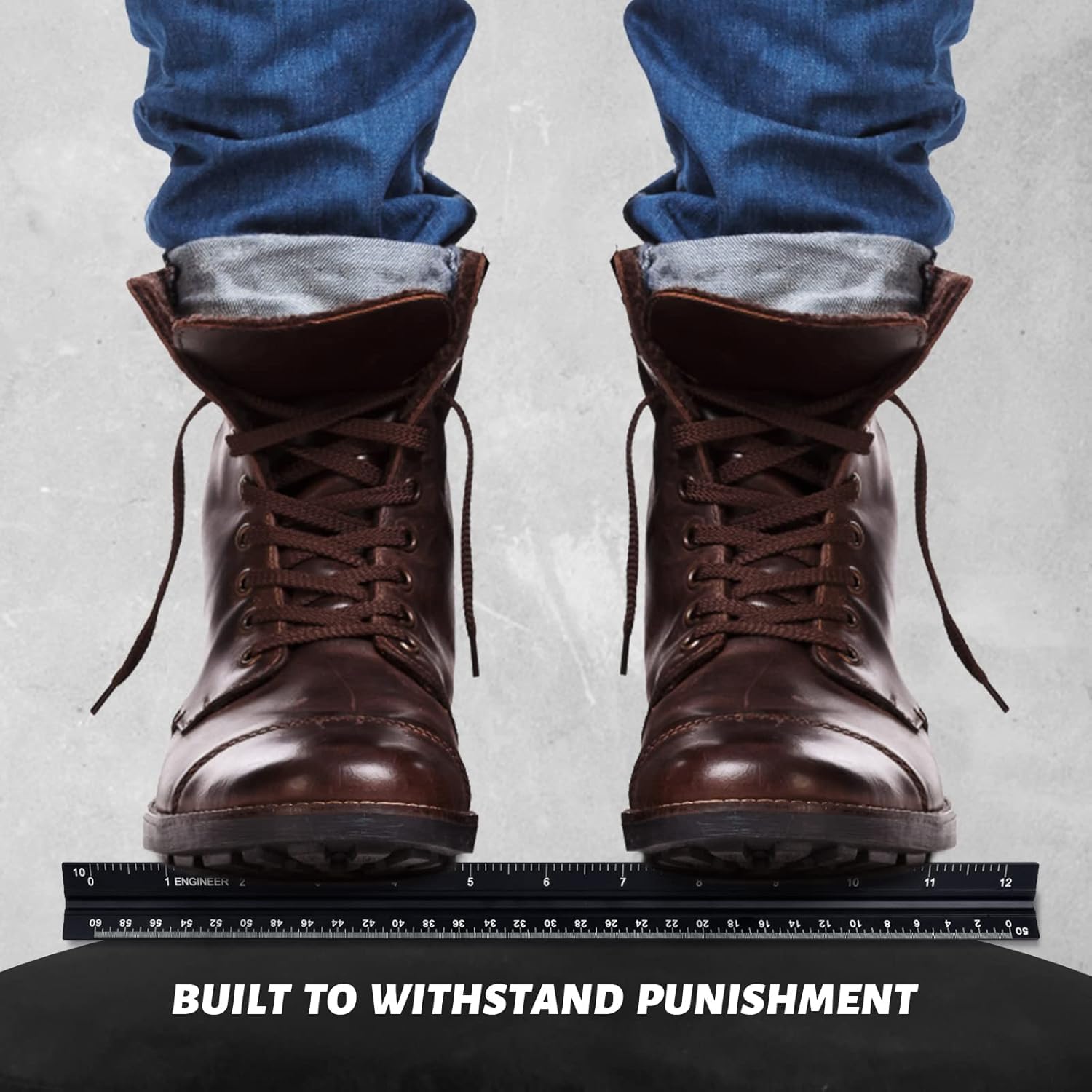 Engineer Scale Ruler, Imperial Measurements 12'', Laser-Etched Aluminum Architect Triangular Ruler Black for Architects, Students, Draftsman, and Engineers
