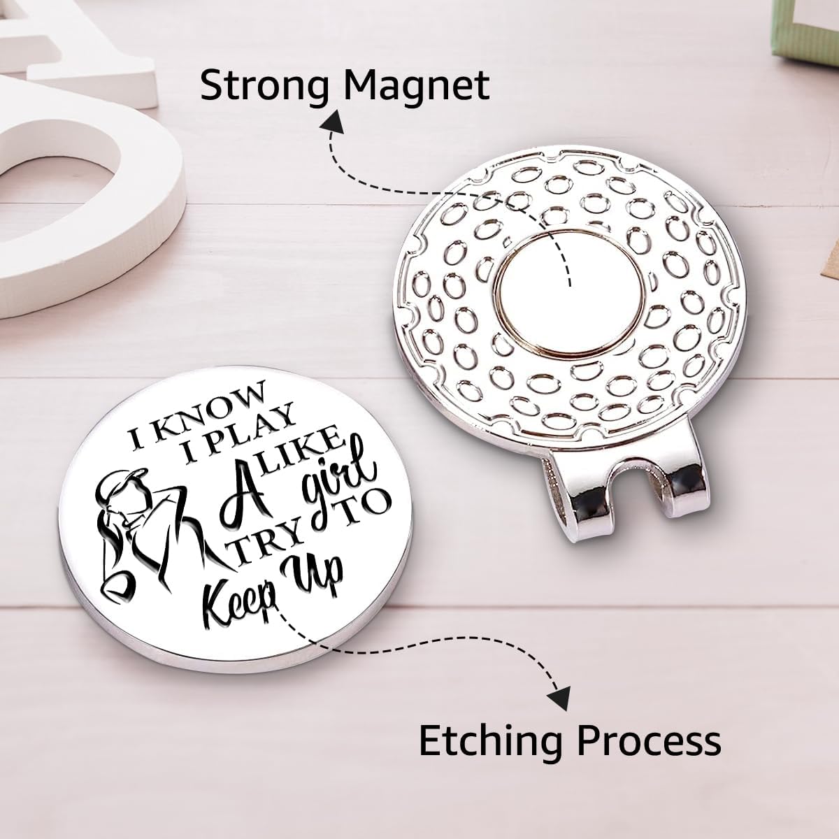 Hafhue I Know I Play Like A Girl Try to Keep Up Golf Ball Marker with Magnetic Hat Clip, Golf Gifts for Women Men, Golf Accessories for Women Men, Great Gift for Golfer, Golf Gift for Mom, Grandma