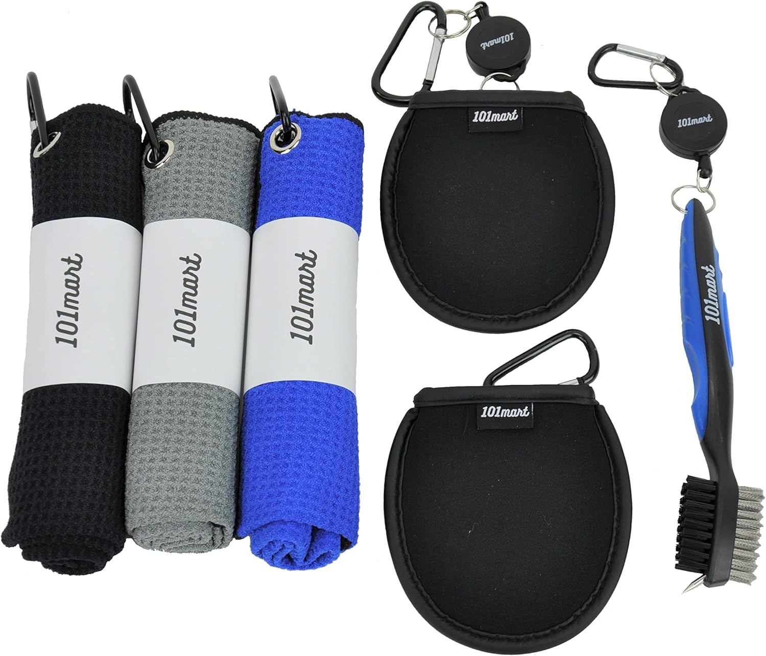 - 6-IN-ONE VALUE PACK: The kit consists of three 16”x16” microfiber golf towels, a golf club brush with groove cleaner, and 2 pocket ball washer pouches. An essential golf accessories kit for any golfer