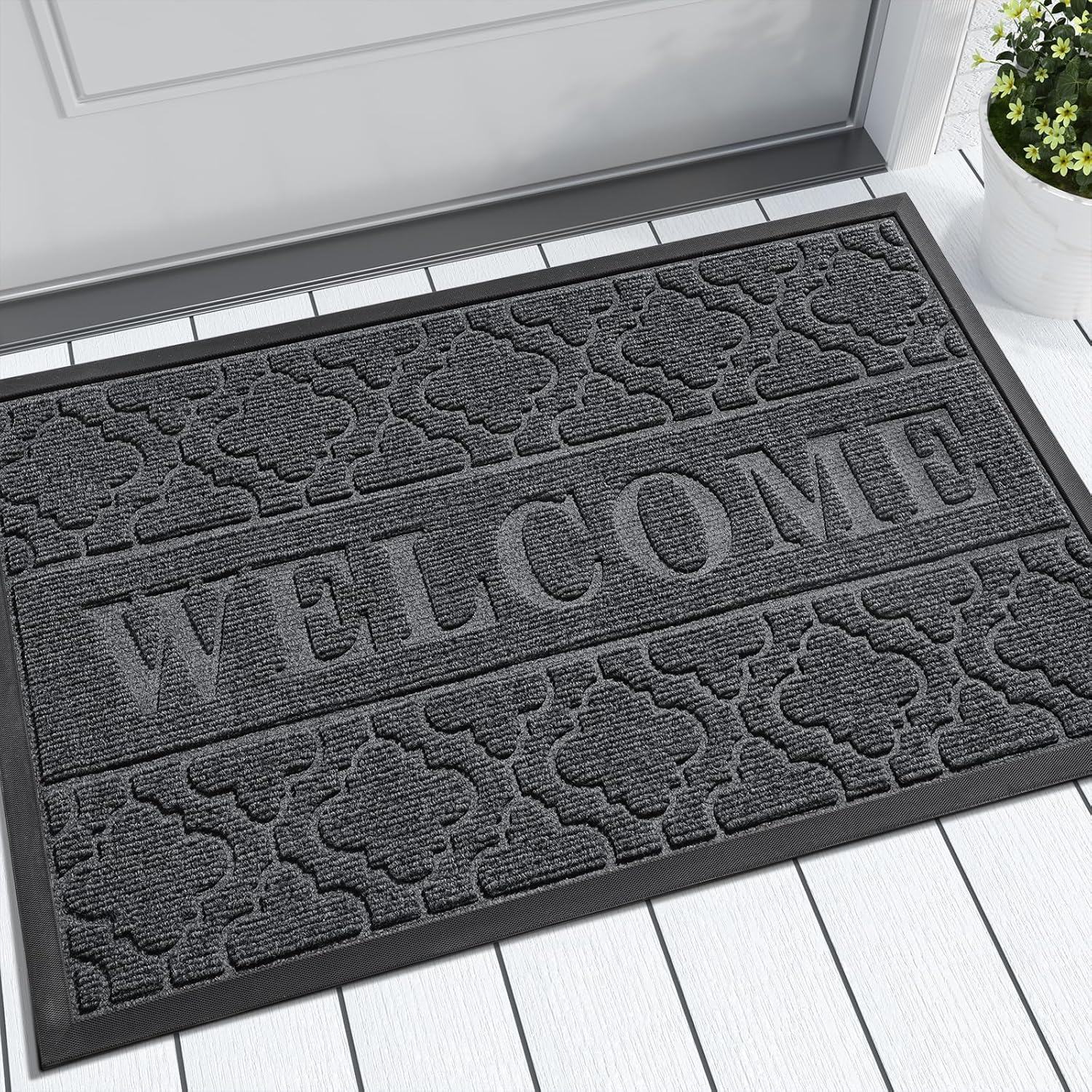 Yimobra Welcome Mat Outdoor Indoor, 36x24 All-Season Waterproof, All-Weather Heavy Duty Doormat, Low Profile Porch Patio Entrance Mat, Sturdy Natural Rubber, Dark Grey