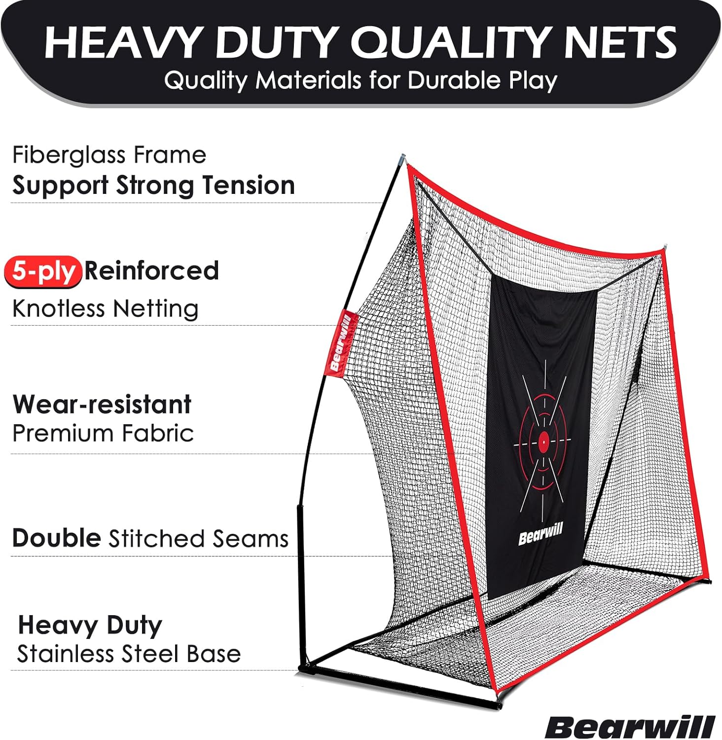 - Designed by Golfers for Golfers: Bearwill golf hitting net is made of sturdy thicker material and tear resistant nylon net enhances its durability and service life.High tightness nylon netting rated up to 160 mph ball speed, which makes our golf nets last longer than regular golf nets.