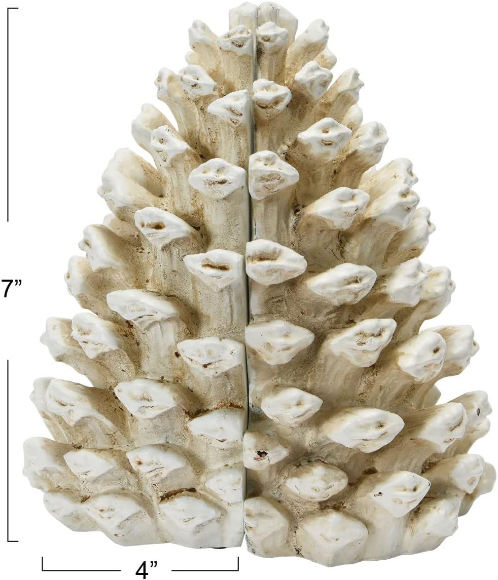 Creative Co-Op Resin Pinecone Bookends, Antique White