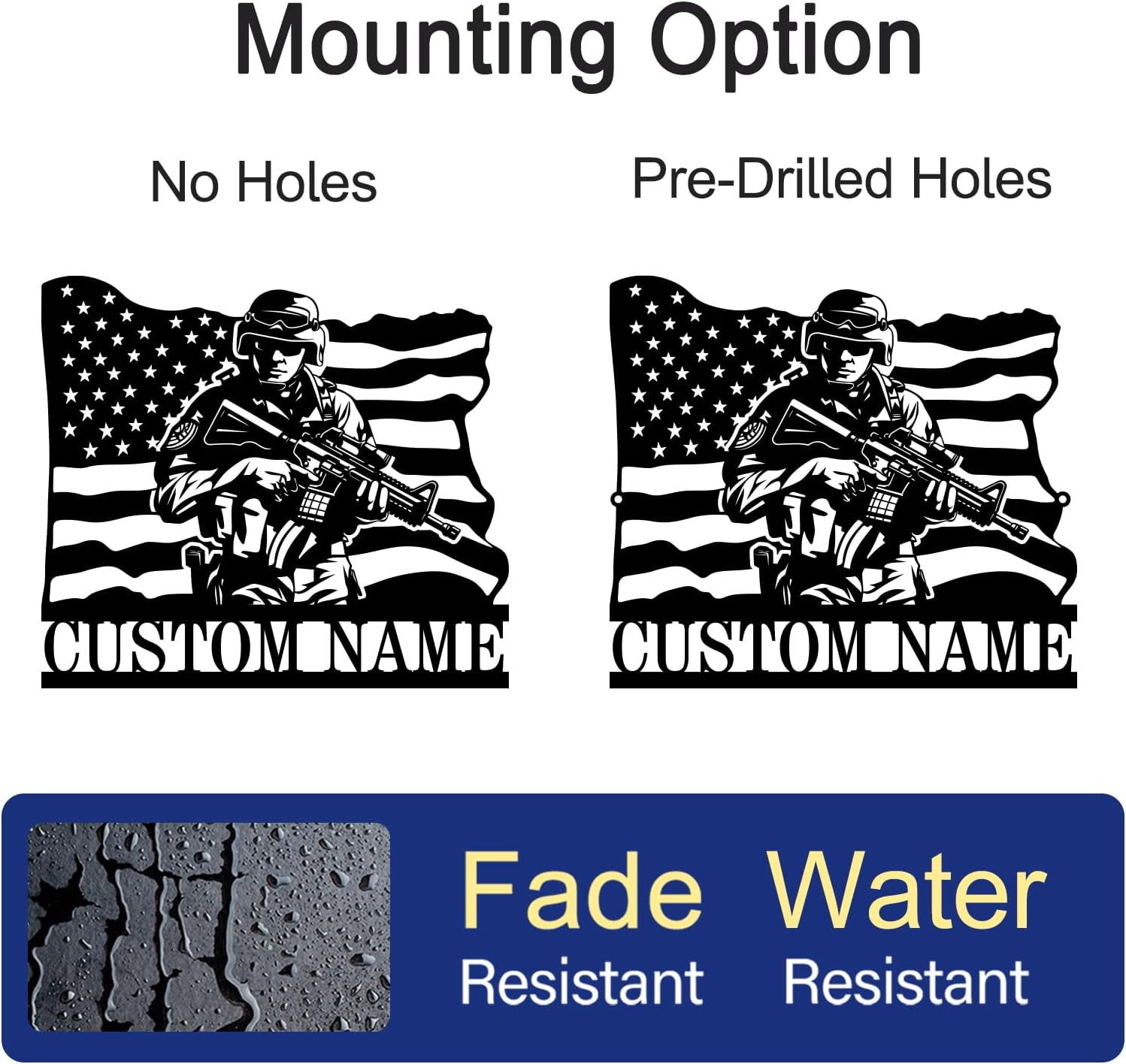 - Unique Personalized Military Design: Show your pride and honor with a custom metal sign featuring the silhouette of soldiers and a waving flag, personalized with your name or rank for a meaningful tribute to military spirit and service.