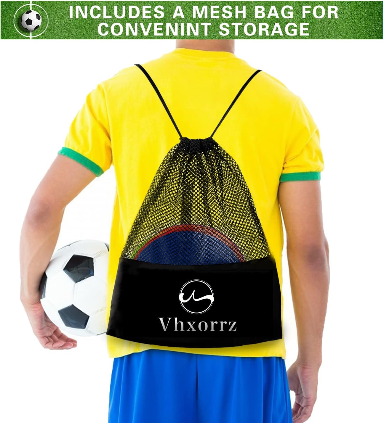 - 【PERFECT SIZE】9 inch diameter, 0.08 inch thickness will not block balls. Big size makes these agility markers useful for a variety of sports in gym class or agility drills when practicing basketball, football, soccer, baseball, volleyball and any other activities