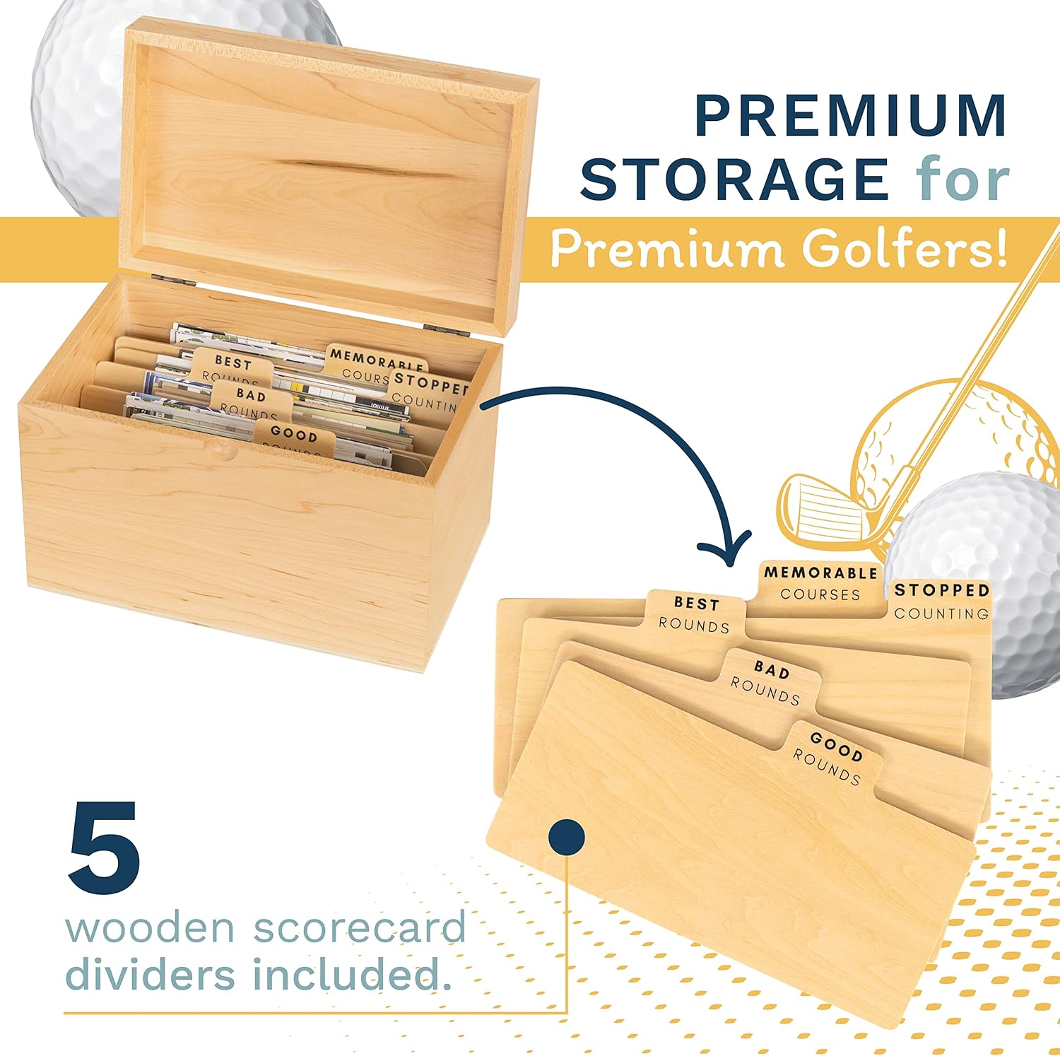 - UNIQUE GIFT FOR GOLFERS WHO HAVE EVERYTHING - Every golfer accumulates scorecards, but very few have an effective way of storing them. This golf scorecard box is the proven solution, and perfect golf gift for men, women, boss, or father on birthday retirement, graduation, or Christmas.