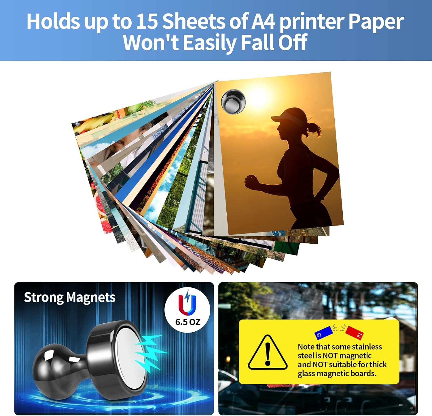 - 【Strong Fridge Magnets】Do not be fooled by these magnets for fridge, They can hold up to 15 sheets of A4 printer paper at once with just a tiny magnet. Even possible to use them in the kitchen to hold cooking tools that weigh no more than 6.5 OZ and the cooking tools won't easily fall off.