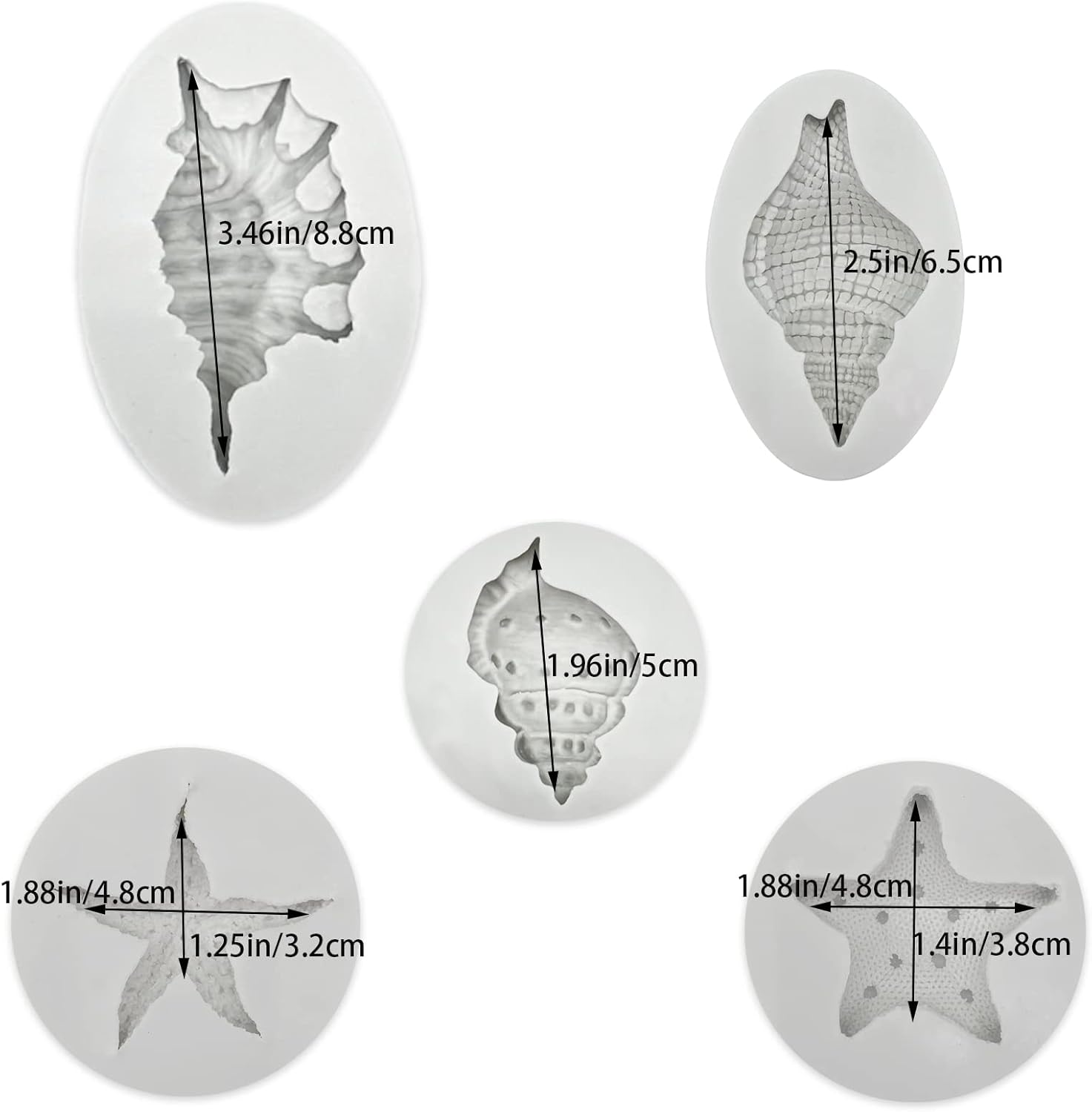 5 Pcs Seashell Starfish Silicone Mold Cake Fondant Silicone Mold Seashell Conch Baking Moldsfor DIY Cake Decoration Chocolate Candy Polymer Clay Crafting Projects