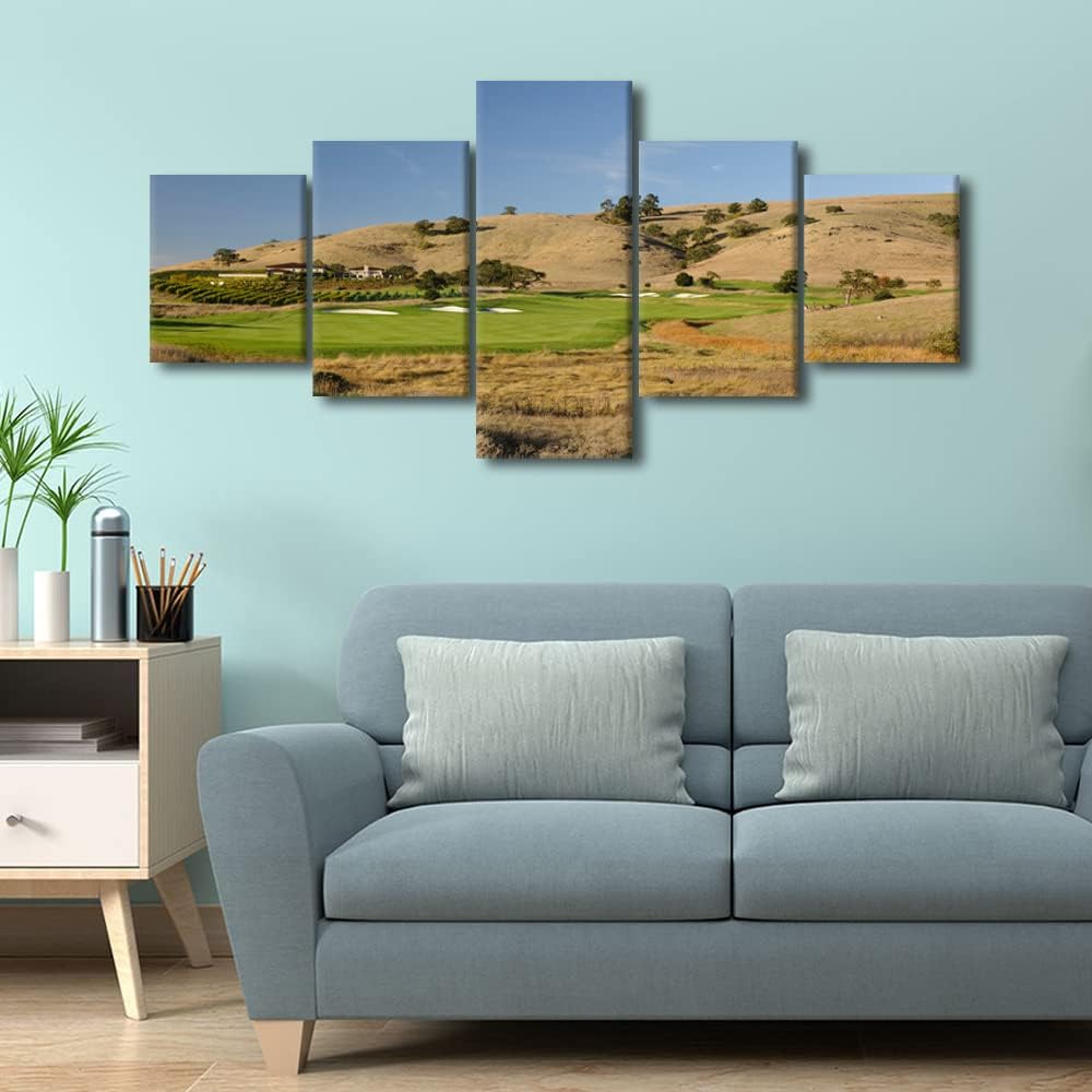 5 Piece American California Golf Course Poster Wall Art Golf Course Field Painting on Canvas Picture for Home Decor Print Modern Artwork for Living Room Bedroom Office Framed Ready to Hang - 50"Wx24"H