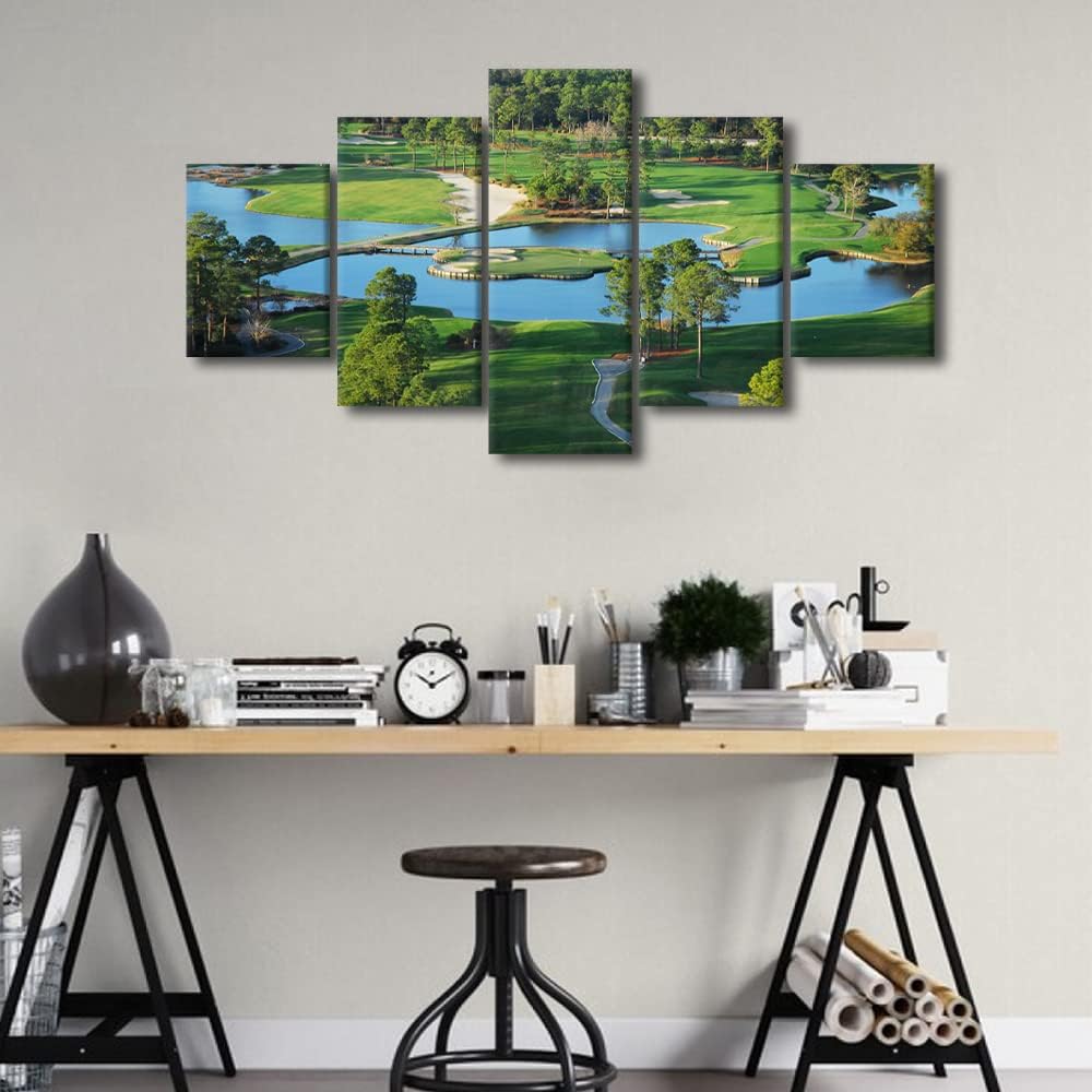 Green Golf Course Wall Art Golfing Sport Paintings for Living Room 5 Panels Prints on Canvas Bunker Pictures Landscape Artwork Gallery-Wrapped Home Modern Decor Framed Ready to Hang - 60"W x 32"H