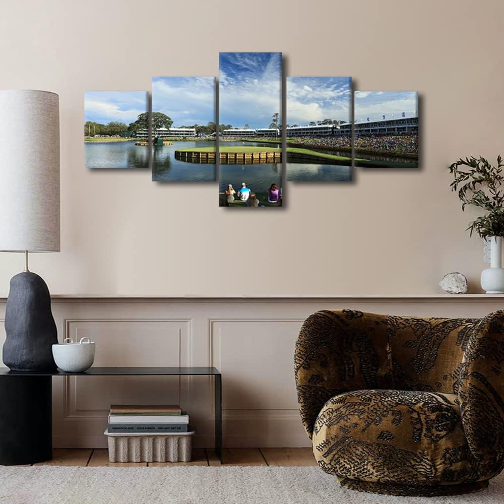 TPC Sawgrass Golf Course Pictures for Living Room Office Wall Decor Florida, USA Golf Course Pictures Wall Art Home Decor 5 Pieces Painting Posters Framed Canvas Prints Ready to Hang - 50" W x 24" H
