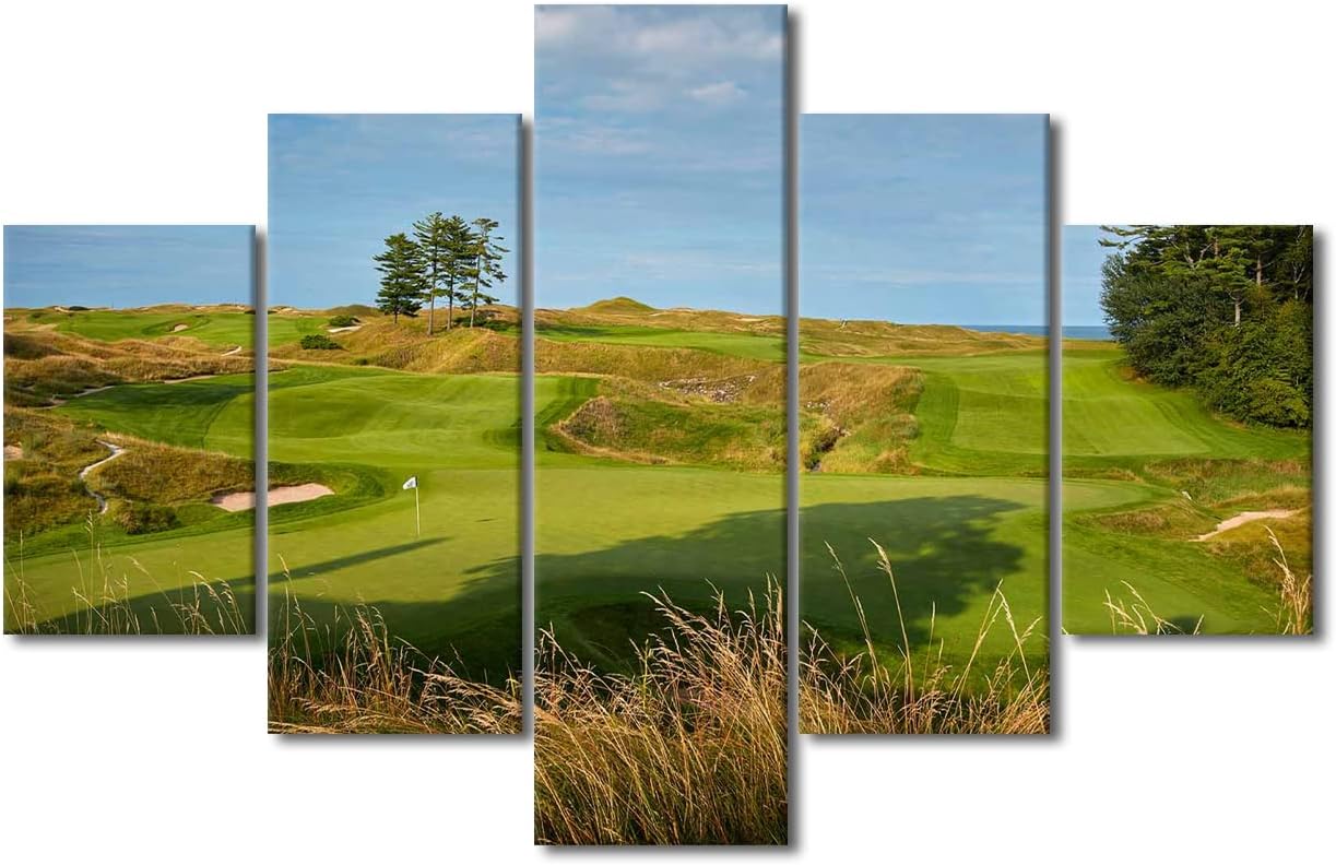 5 Piece Golf Course Field Canvas Wall Art Wisconsin USA Golf Course Picture Wall Decor Nature Landscape Pictures House Decor Print Posters Artwork for Living Room Decor Ready to Hang - 60"W x 40"H