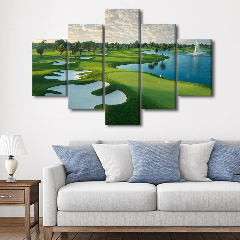 Pictures Wall Decor Golf Course Artwork Blue Lake and Green Grass Paintings for Living Room Giclee Multi Panel Prints Wall Art on Canvas House Decorations Framed Stretched Ready to Hang - 60"W x 40"H