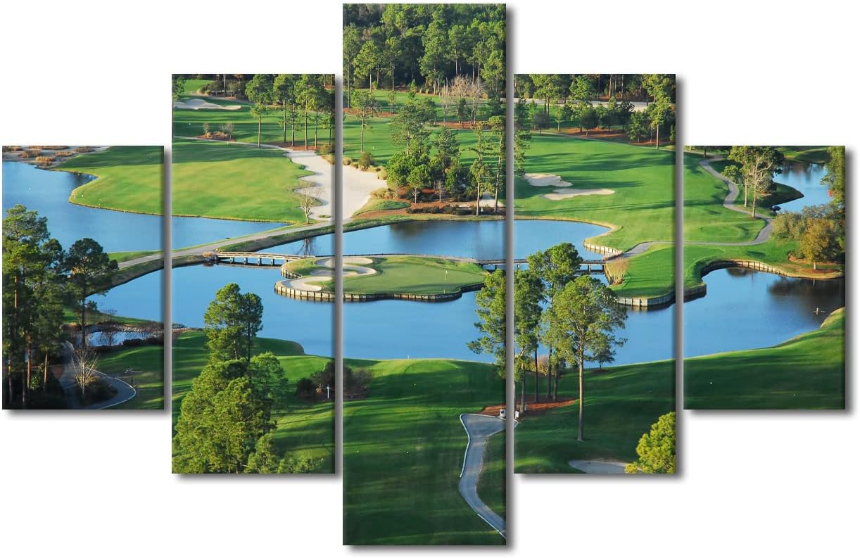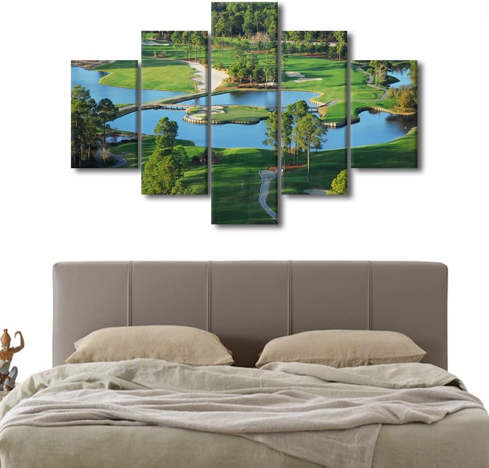 Wall Paintings for Living Room Golf Course Scenery Pictures Green Lawn Artwork HD Prints Multi Panel Canvas Wall Art Contemporary Home Decorations Giclee Framed Stretched Ready to Hang - 60"W x 40"H