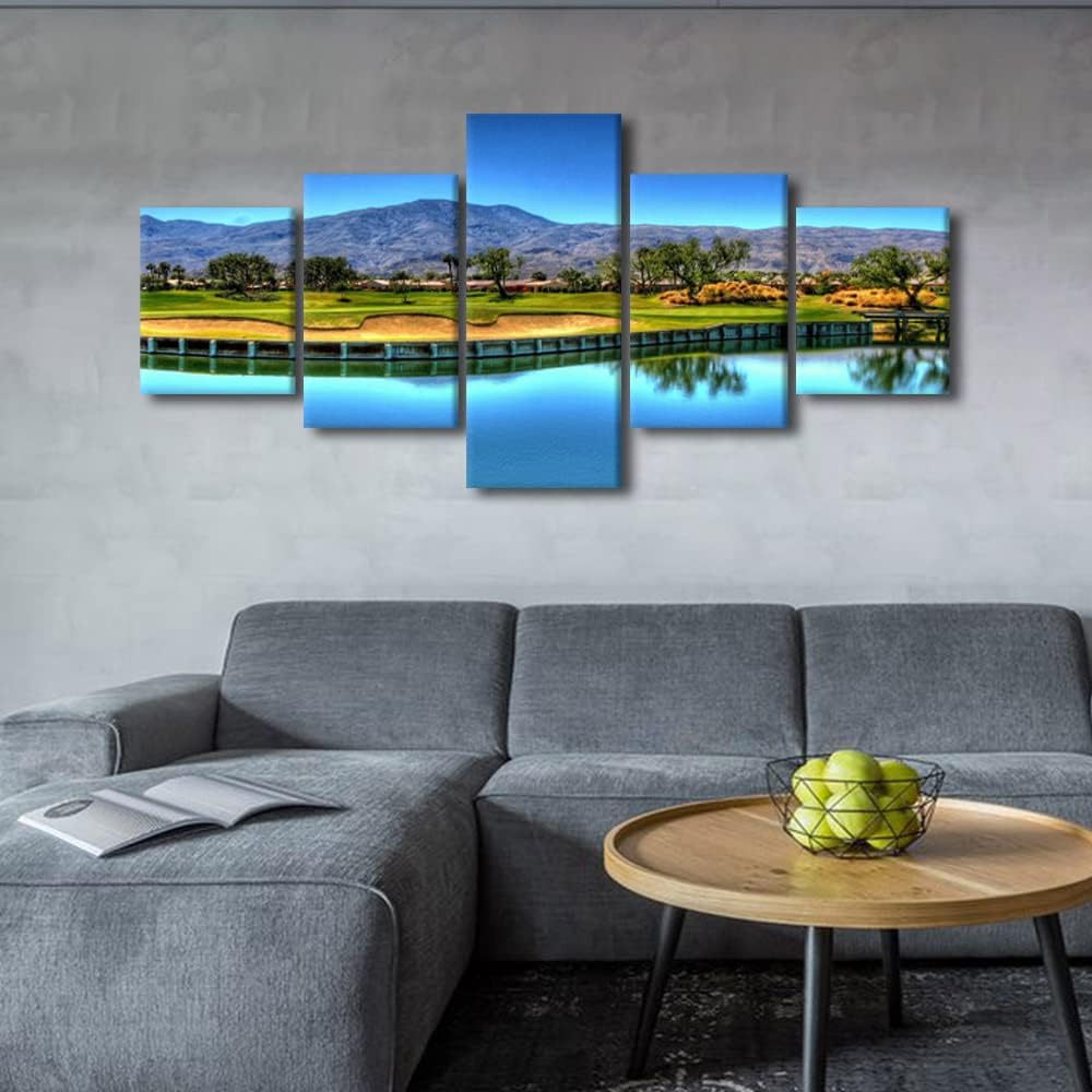 Wall Decor Augusta National Golf Canvas Prints Poster Georgia USA Golf Course Pictures Canvas Painting for Living Room Decor 5 Panels Gallery-wrapped Artwork Set Wooden Framed Ready to Hang(50"Wx24"H)