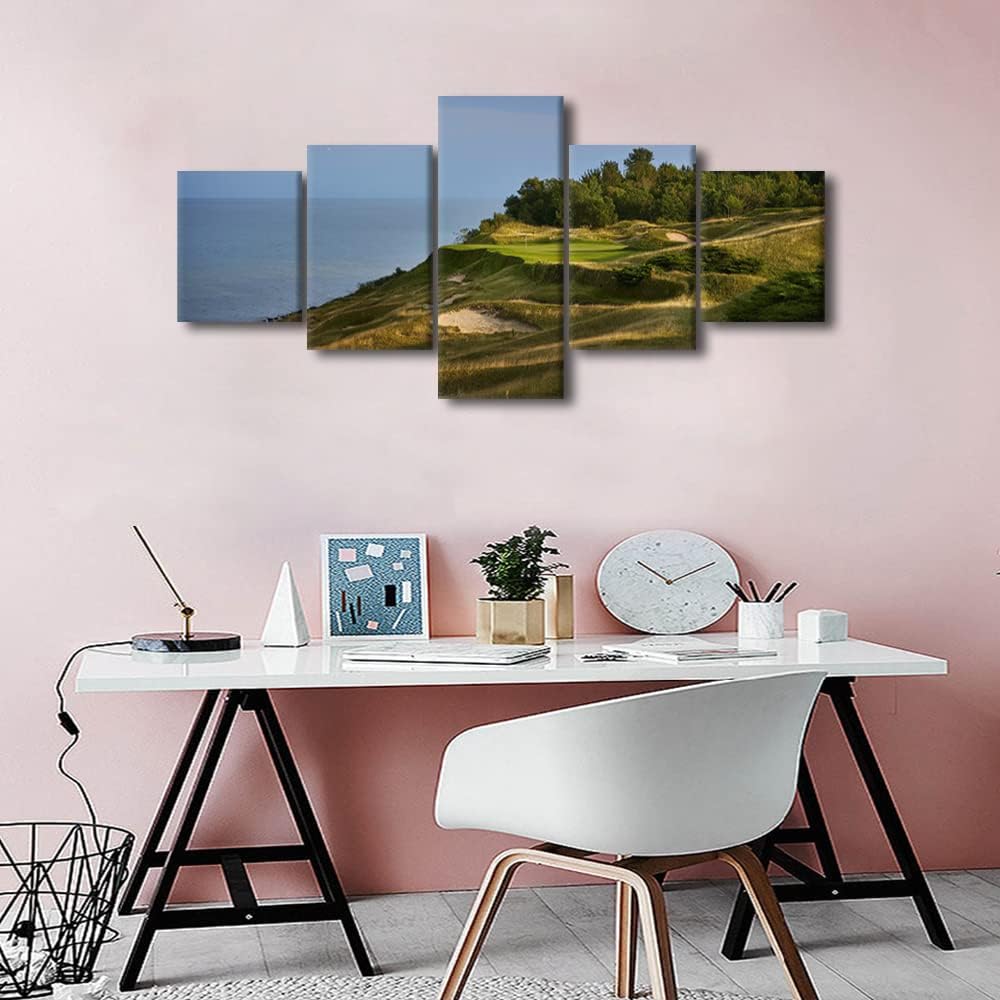 5 Panel Whistling Straits Paintings Canvas Prints Wall Art Golf Course Home Decor Scenery Pictures for Living Room Bedroom Office Wall Decorations Poster Painting Framed Ready to Hang - 50"W x 24"H
