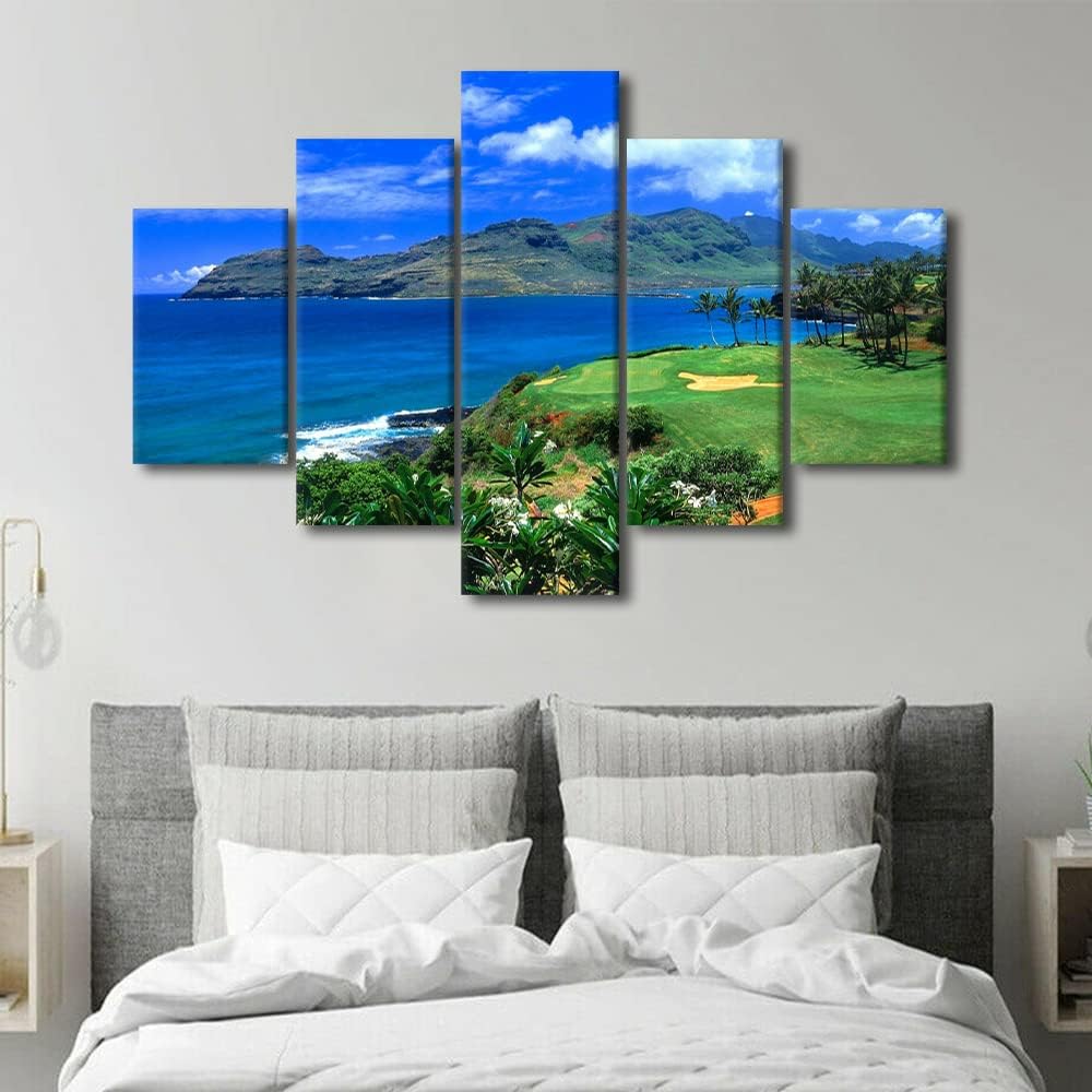 5 Piece Canvas Wall Art for Living Room Golf Course Pictures White Golf Ball Paintings Green Lawn Scenery Artwork Gallery-Wrapped Modern Home Decor Posters and Prints Framed Ready to Hang - 60"Wx40"H