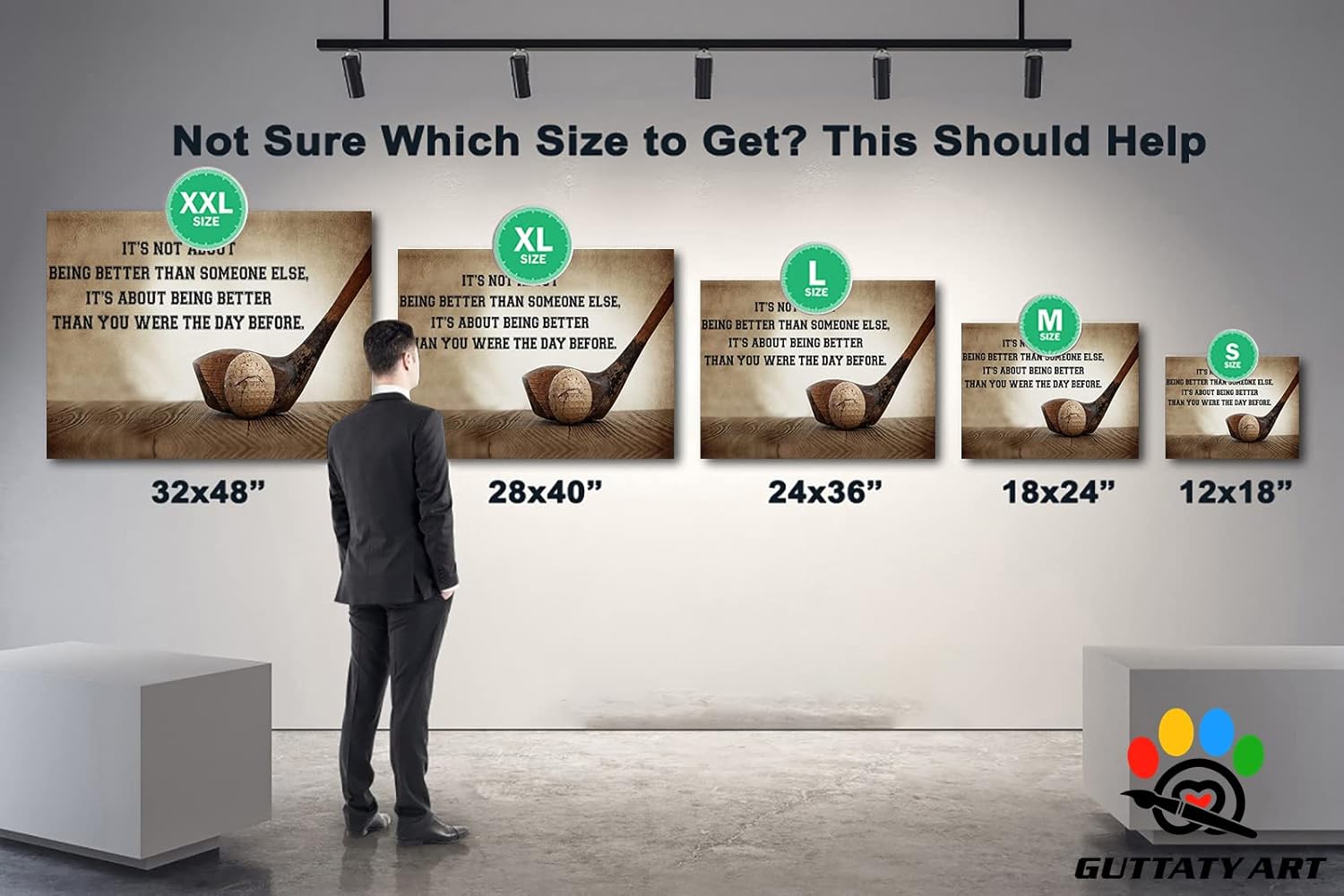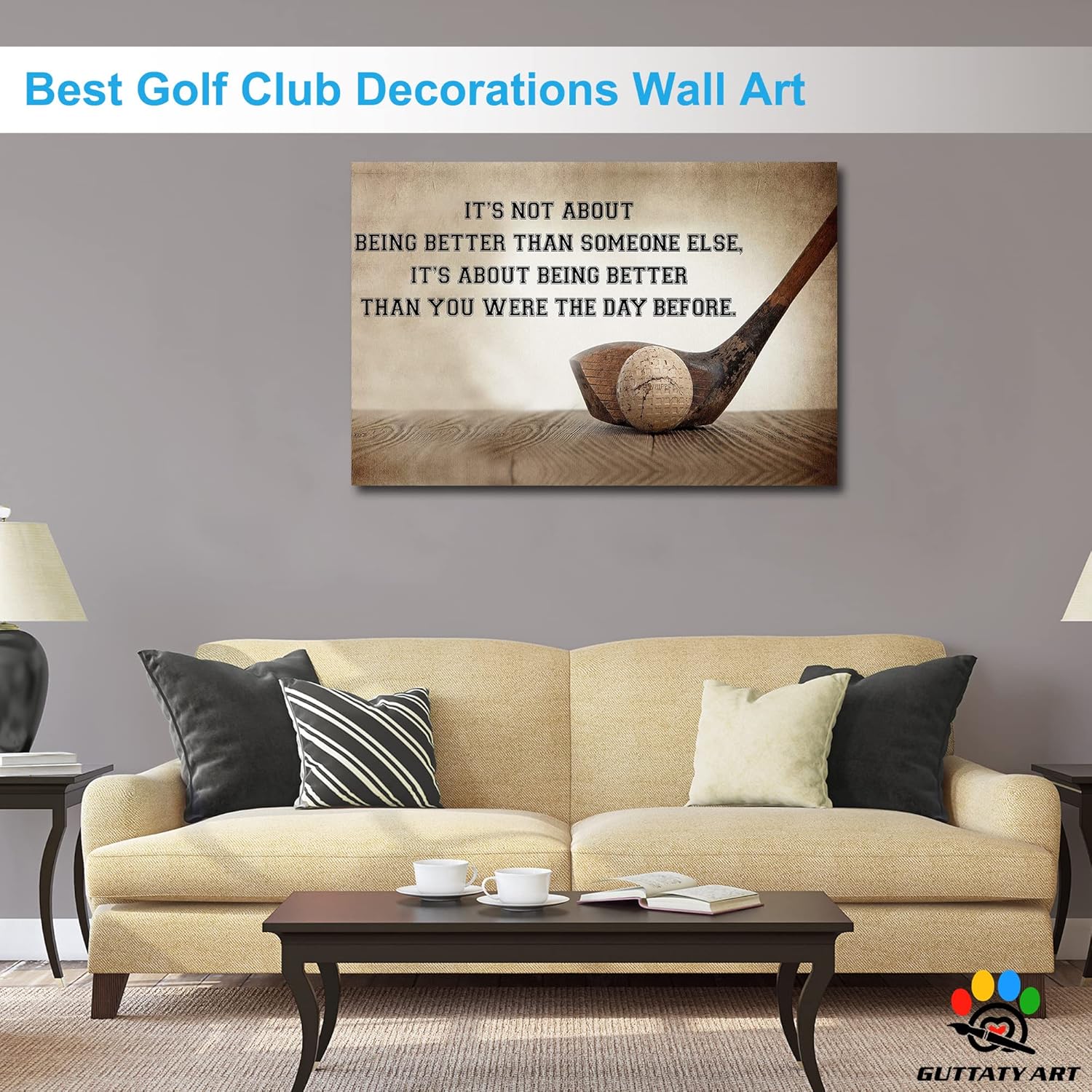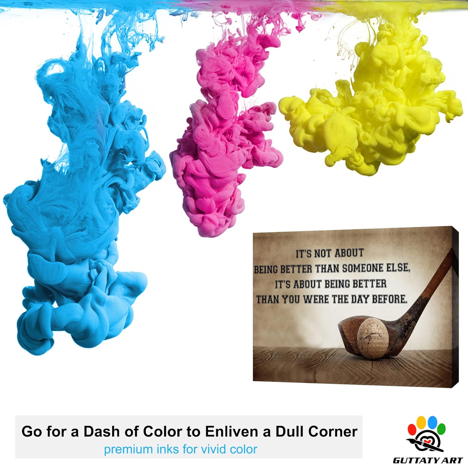 GUTTATY Golf Wall Art, Inspirational Quote Vintage Golf Pictures Posters Canvas Print Wall Decor for Golfer's Man Cave Home Ofice Ready to Hang (32x48 Inches)