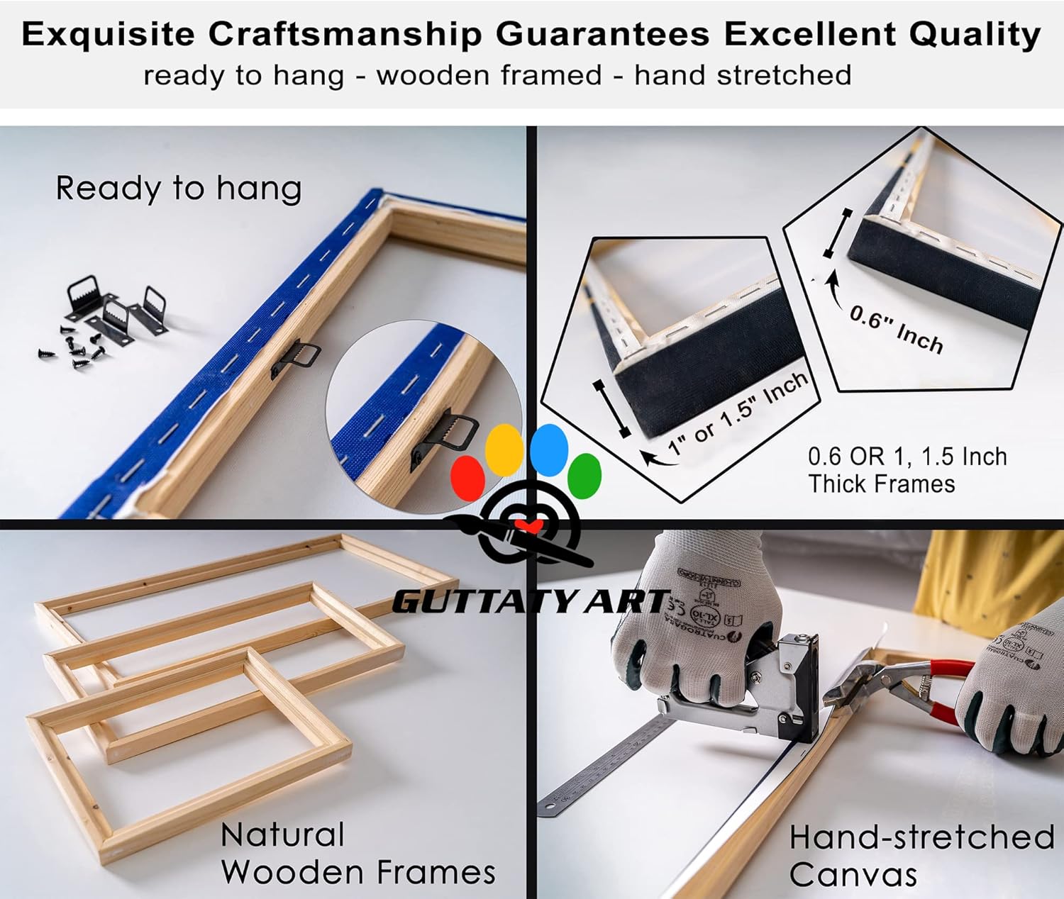 - š Amazing High-Quality Canvas and Frame - Museum-quality cotton canvas stretched on a 1.5" stretcher bars (not the thin 3/4 like most) wooden frame. The image continues around the sides and is stapled on the back. There is a black metal hook(s) already mounted on the wooden bar of each panel of the canvas for easy hanging. Each canvas artwork will be wrapped in a protective bag and then packaged in a paper box to ensure that it can reach you in perfect condition.
