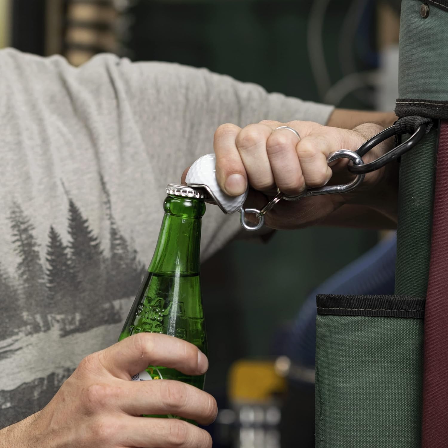 - EASY TO FIND: The golf bottle opener has a built-in keychain and carabiner so you can clip it right to your golf bag. So you won't be going thirsty on the course next time someone brings a sixpack out.