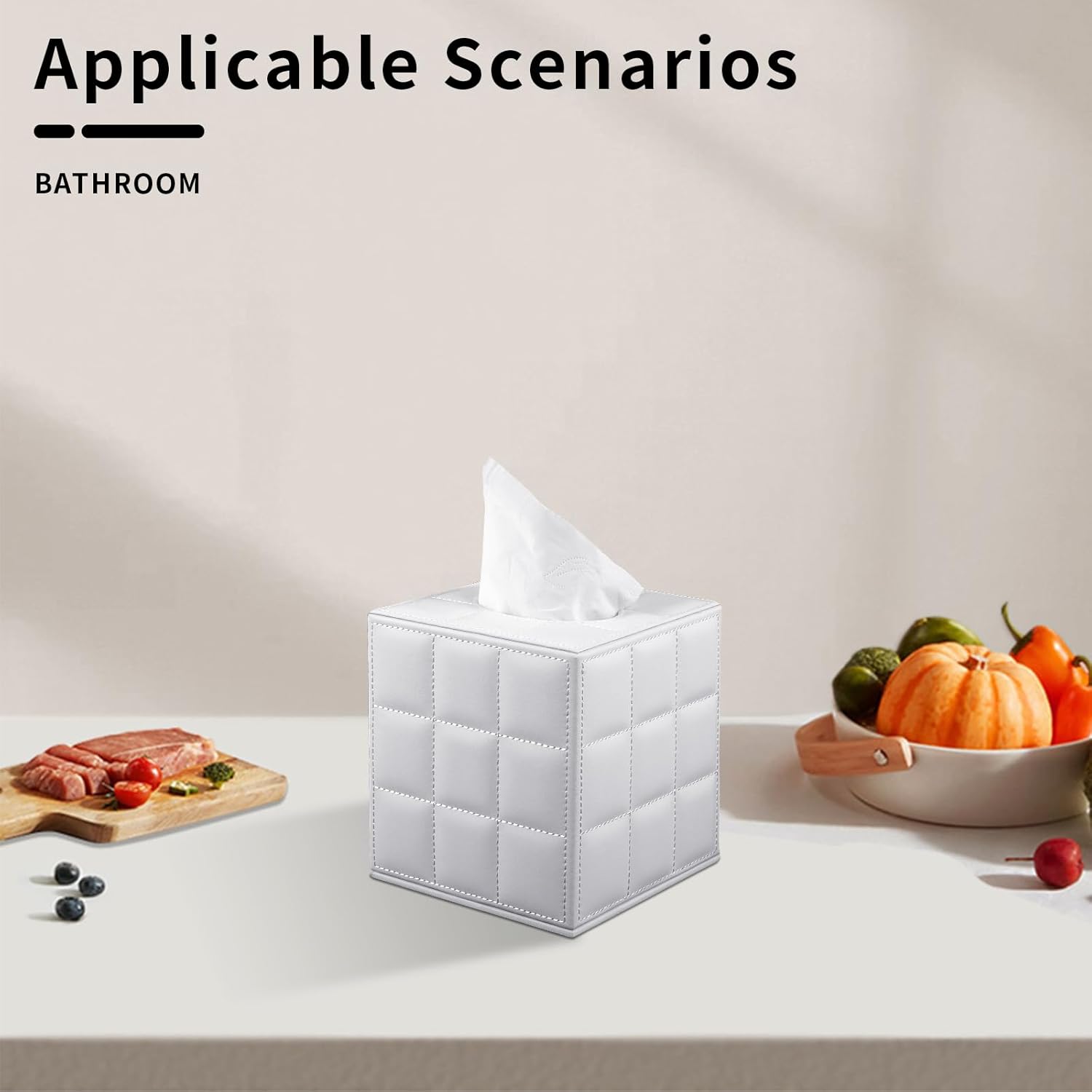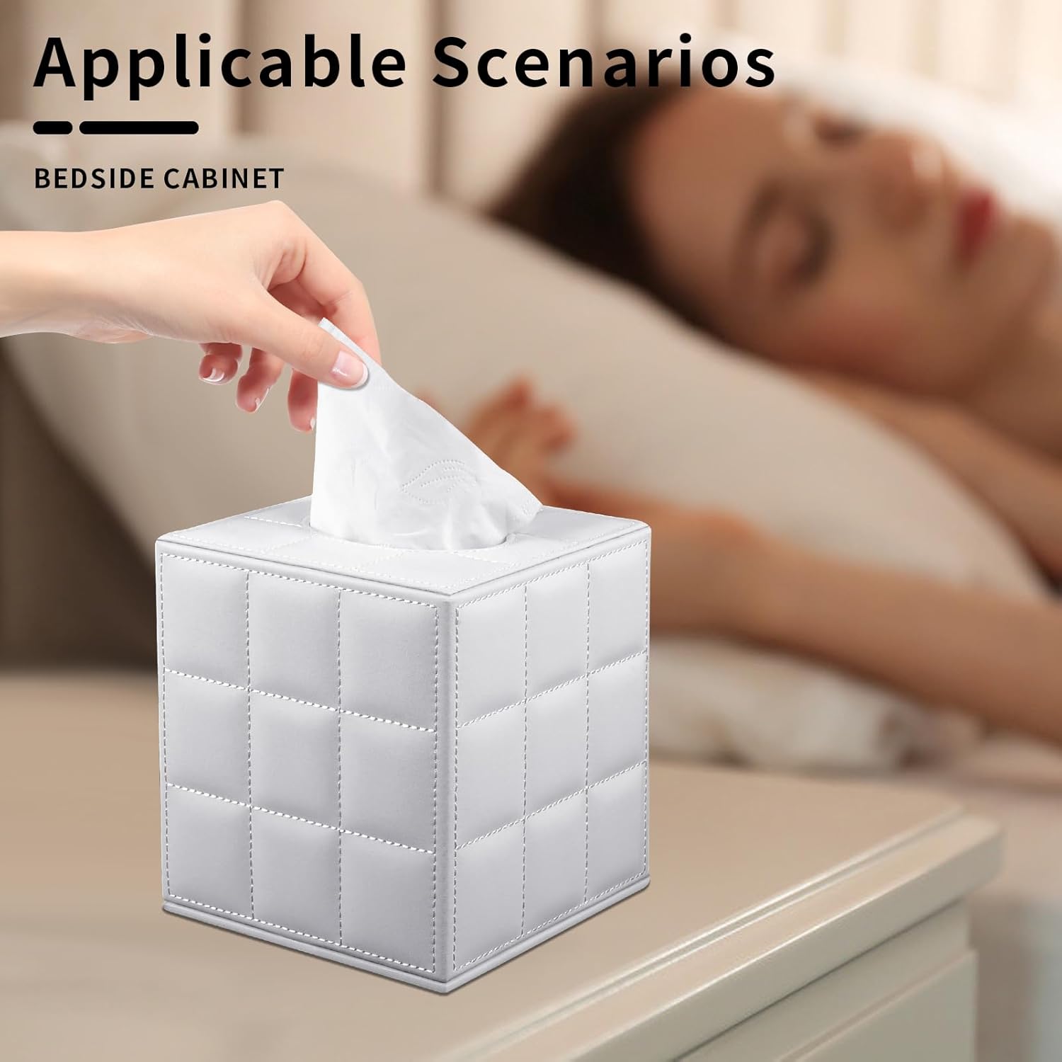 - High Quality- The Tissue Box Holder is covered by high quality PU faux leather +MDF and interior is made of non-woven fabrics.easy to open and close to refill with new tissues,waterproof surface and durable,The PU Leather surface is easy to wipe clean. The Simple & Morden design will matched perfect with your home/ office decor.