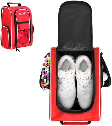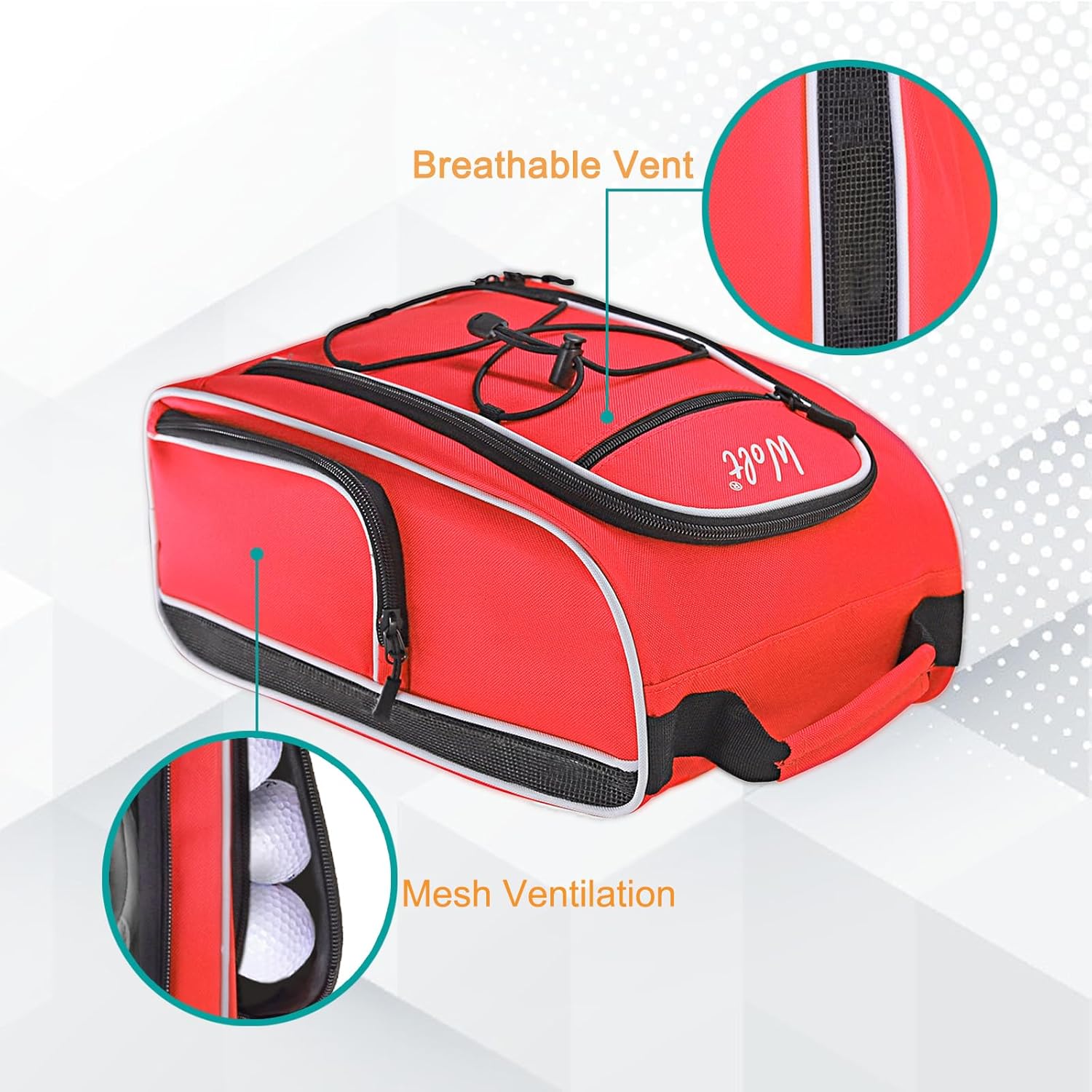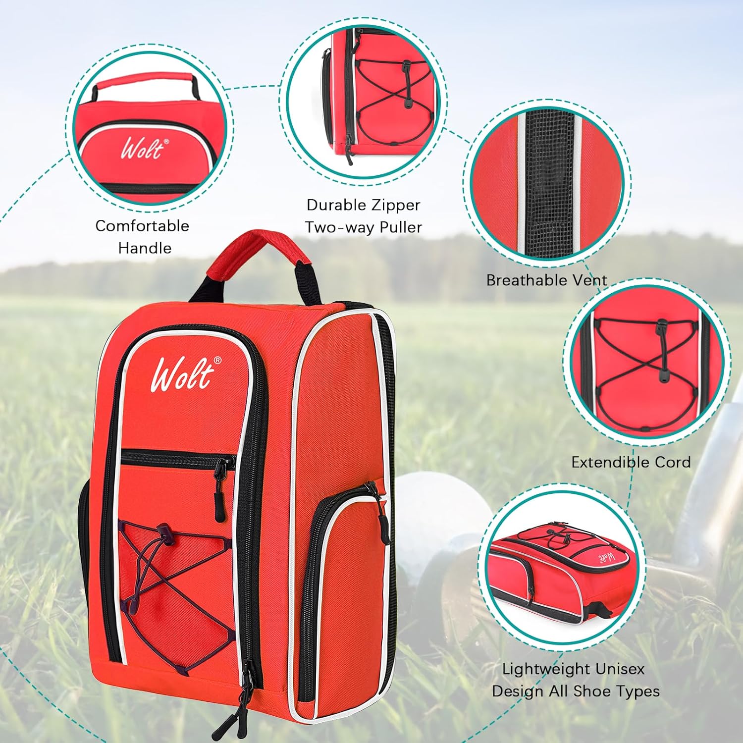 Wolt Golf Shoe Bag - Sports & Travel Shoes Carrier Bags with Ventilation & Double Outside Accessory Pocket for Socks, Tees, Golf Balls, etc. for women and men (Red)