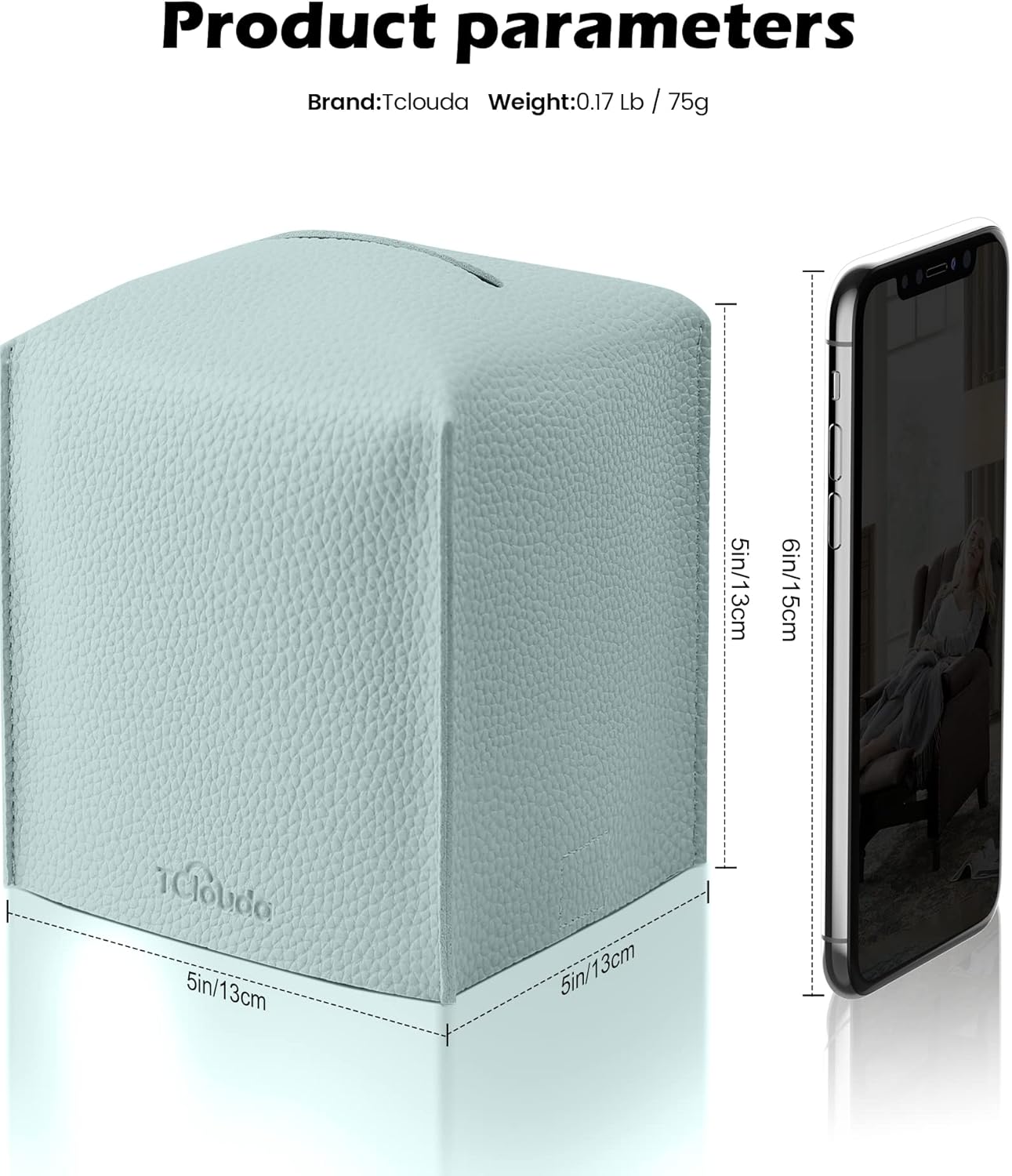 Tissue Box Cover for PU Leather, Modern Simple Solid Color Holder Square Tissue Bag, Ideal for Bathrooms,Office,Car,Outdoor Tent,Dining Table,5"X5"X5", Single Sky Blue
