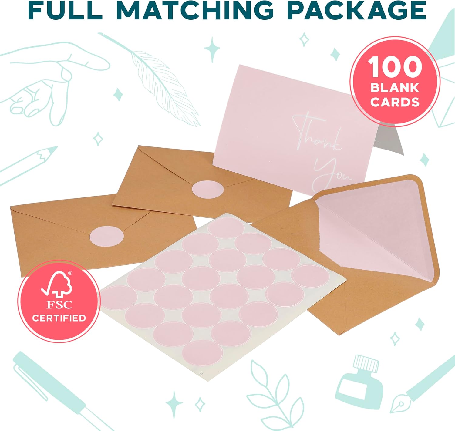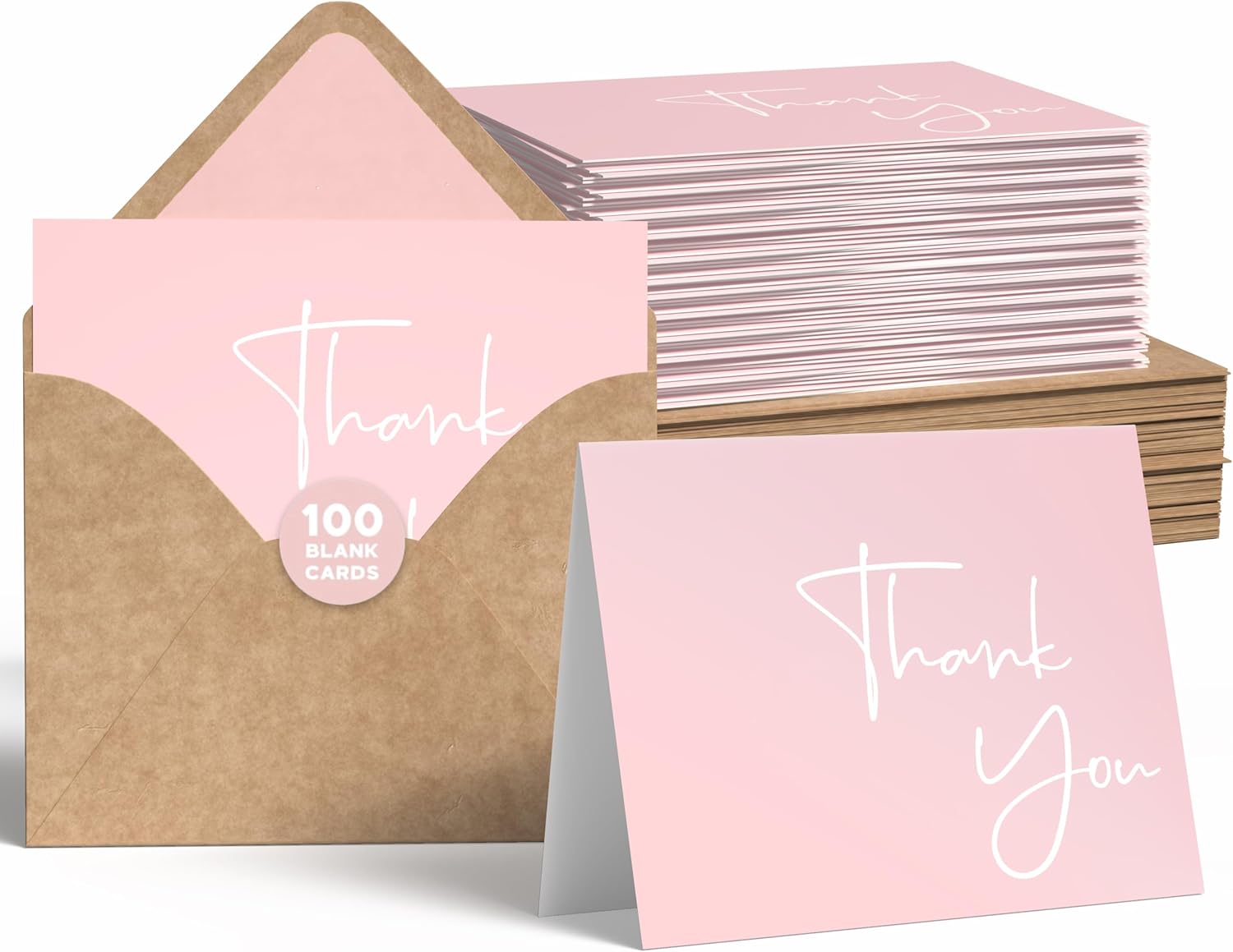 - MODERN & STYLISH – Make every thank you memorable with these elegantly designed bulk thank you cards crafted with premium cardstock. Each set includes 100 cards, matching envelopes and sticker seals. Perfect for expressing appreciation in a polished, heartfelt way.