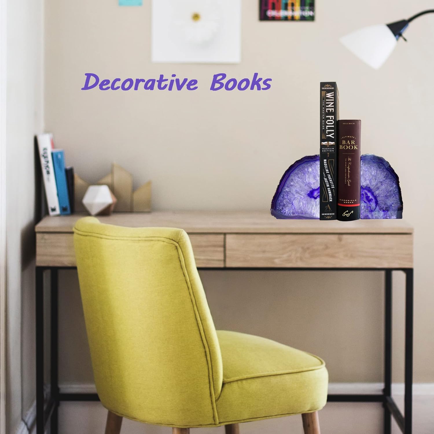 - Elegant Stone Books Holer: Enhance your bookshelf or crystal altar with our decorative agate bookends. Dyed purple to adapt to various home decoration themes